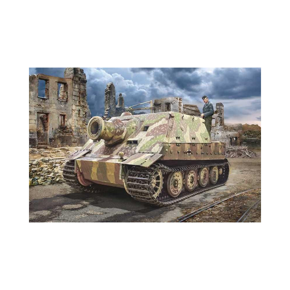 A II. világháború alatt a német hadseregnek gyakran kellett erődített állások vagy zárt városmagok ellen harcolnia. Taktikai okokból - a csapatok túl közel voltak az ellenséges vonalhoz - sem tüzérségi, sem légi támogatást nem lehetett bevetni. Ezért hozták létre a "Sturm"-ot - a "Tiger" nehéz harckocsi (Italeri N. 6471) egyik változatát. A nehéz alvázra egy hatékony és valóban egyedülálló 38 cm-es aknavetőt szereltek, amely rövid hatótávolsággal, de hatalmas tűzerővel rendelkezett. Mindössze néhány Sturmtigert gyártottak, és 1944-ben elsősorban a nyugati fronton találtak alkalmazásra.
