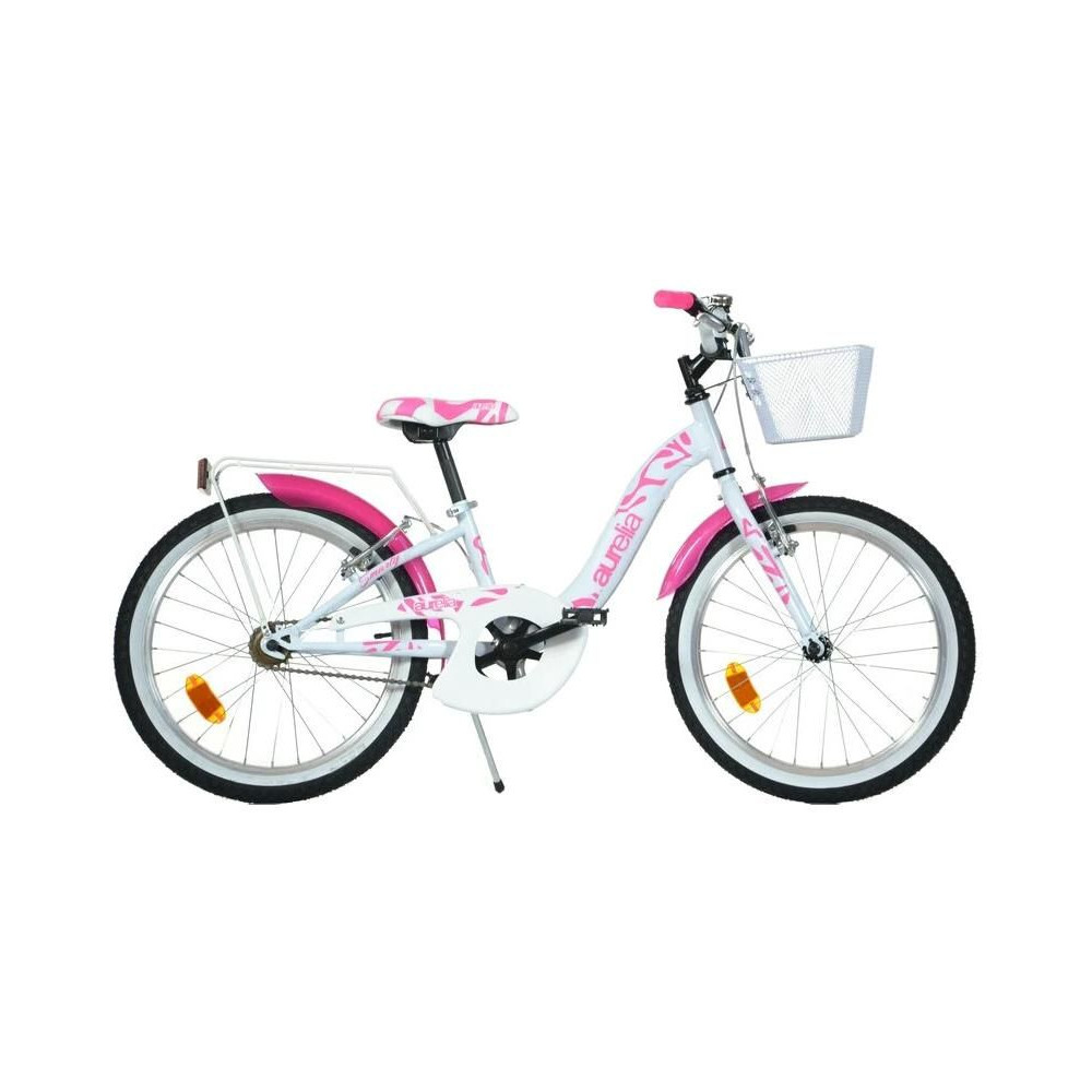 Gyermek kerékpár DINO Bikes - 20" fehér / rózsaszín, dizájnos lány dizájnban. Állítható nyeregmagasság 56-68 cm, könnyű Hiten acél váz, sárvédők, első kosár és hátsó csomagtartó. Teljes tárcsafékek mindkét keréken és szabadonfék.