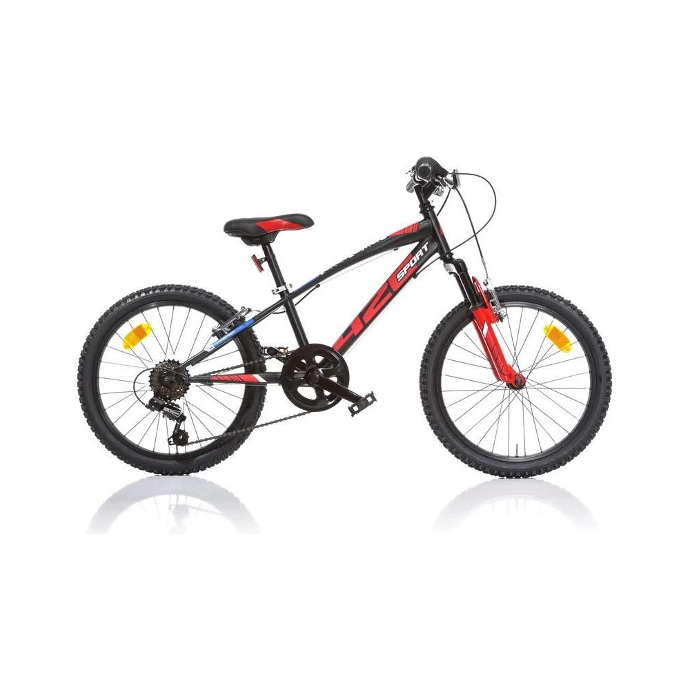 A DINO Bikes - 20" Aurelia 420 Sport rugós kerékpár fekete színben sportos megjelenéssel, első rugós villával, 59-68 cm-es állítható ülésmagassággal, alumínium felnikkel, könnyű Hiten acél vázzal és Grip Shift 6 sebességes Shimano váltóval rendelkezik. Fékek mindkét keréken, tartóállvány tartozék.