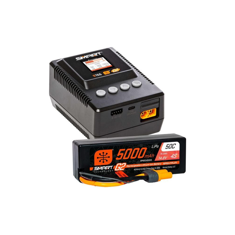 A Spektrum™ Smart Powerstage™ csomag egy egydobozos megoldás 4S LiPo akkumulátort használó RC autókhoz. A csomag tartalmaz egy Spektrum Smart S155 1x55W-os SMART technológiával ellátott AC töltőt, IC3/IC5 csatlakozókkal ellátott kimenettel, színes LCD kijelzővel (SPMXC2050) és egy Spektrum Smart G2 LiPol14.8V 5000mAh 50C HC IC5 akkumulátorral (SPMX54S50H5).
