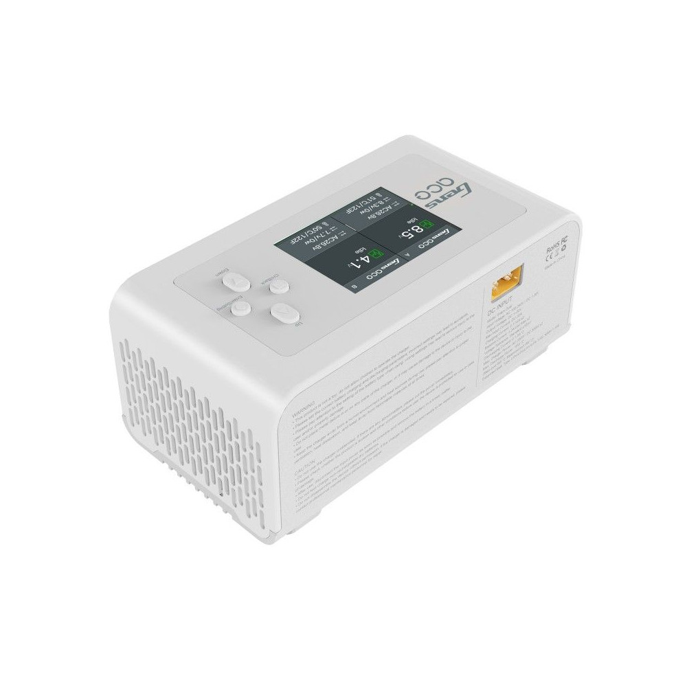 Dvojkanálová AC/DC balančná nabíjačka GensAce Imars, schopná nabíjať 10 A, s celosvetovou univerzálnosťou napätia 100 V-240 V a výkonom 100 W. Je skvelá na nabíjanie batérií FPV / dronov / RC áut.