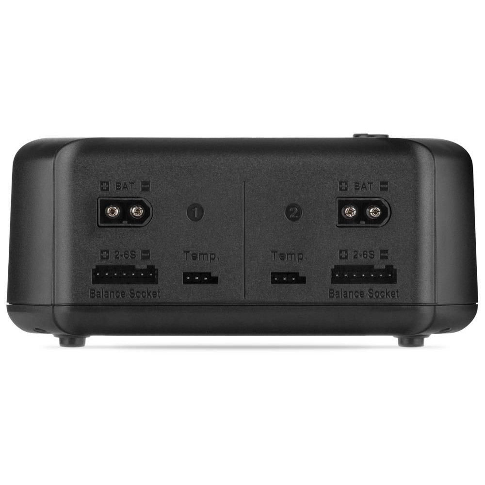 A töltő mindkét csatornában XT60 kimeneti aljzatokkal, valamint univerzális aljzatokkal van felszerelve JST-XH szervizcsatlakozókhoz, lehetővé téve az akkumulátor tápkábeleinek és a 2-6S készletek JST-XH szervizcsatlakozóinak közvetlen csatlakoztatását – ha XT60 és JST-XH csatlakozókkal rendelkező készleteket használ, akkor töltőkábelek és adapterek nélkül is meglehet. Más rendszerek szervizcsatlakozóinak csatlakoztatásához szabványos Sky RC adaptereket használhat.