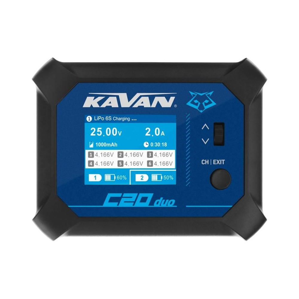 A töltőkészlet tartalma: KAVAN C20 Duo töltő, hálózati kábel, használati utasítás.