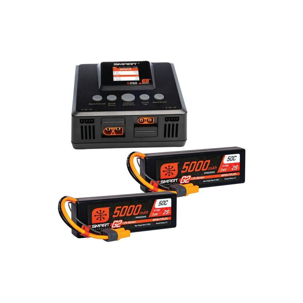 A Spektrum™ Smart Powerstage™ csomag egy egydobozos megoldás 1:8 és 1:10 RC autókhoz, 2S LiPo akkumulátorokkal. A csomag tartalmaz egy Spektrum Smart S250 töltőt SMART technológiával, IC3/IC5 csatlakozókkal ellátott kimenettel és 2db Spektrum Smart G2 LiPol 7,4V 5000mAh akkumulátorral.