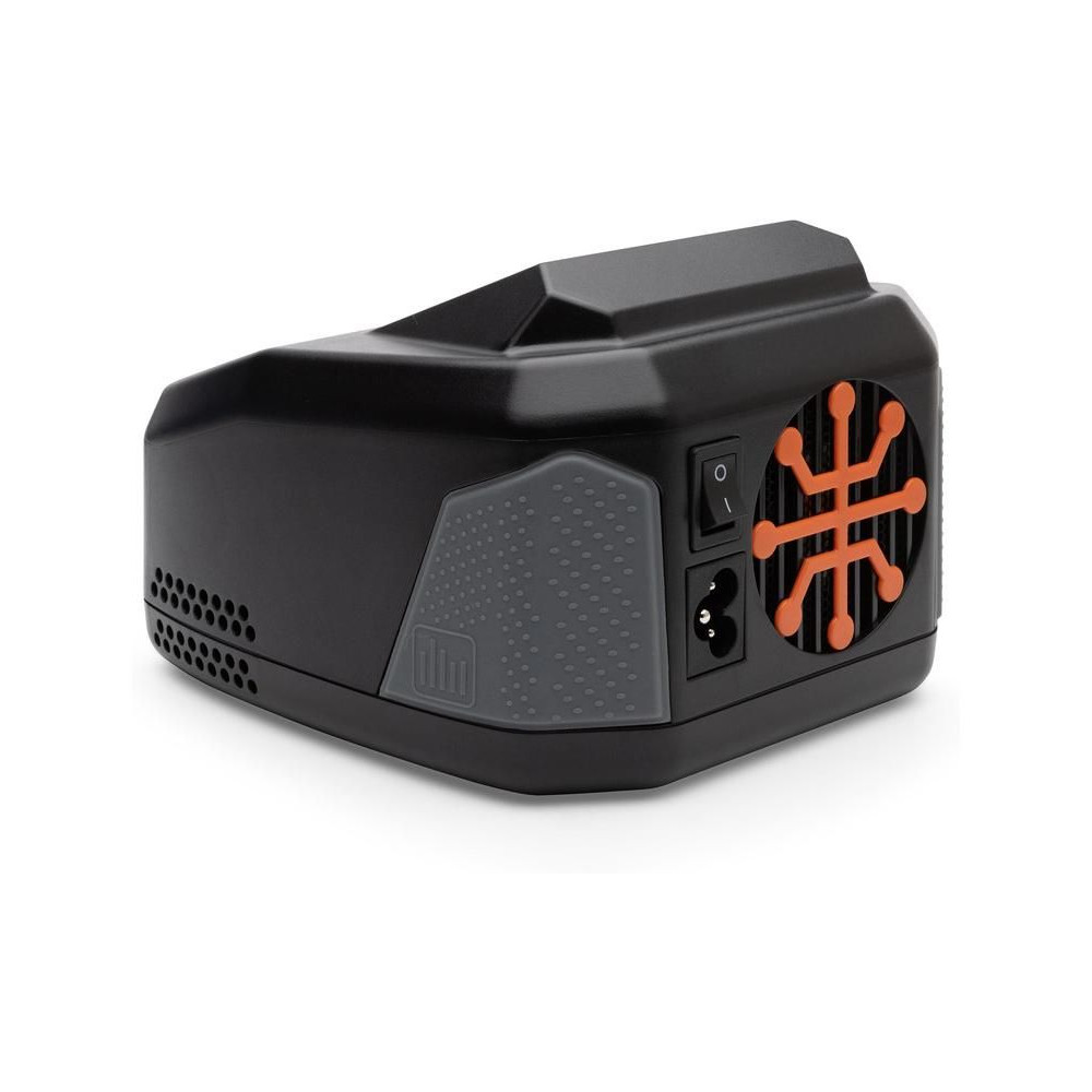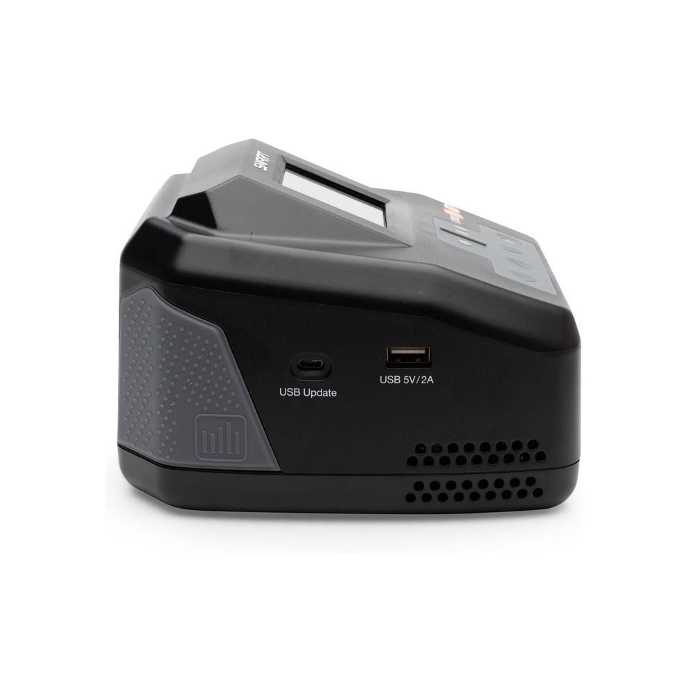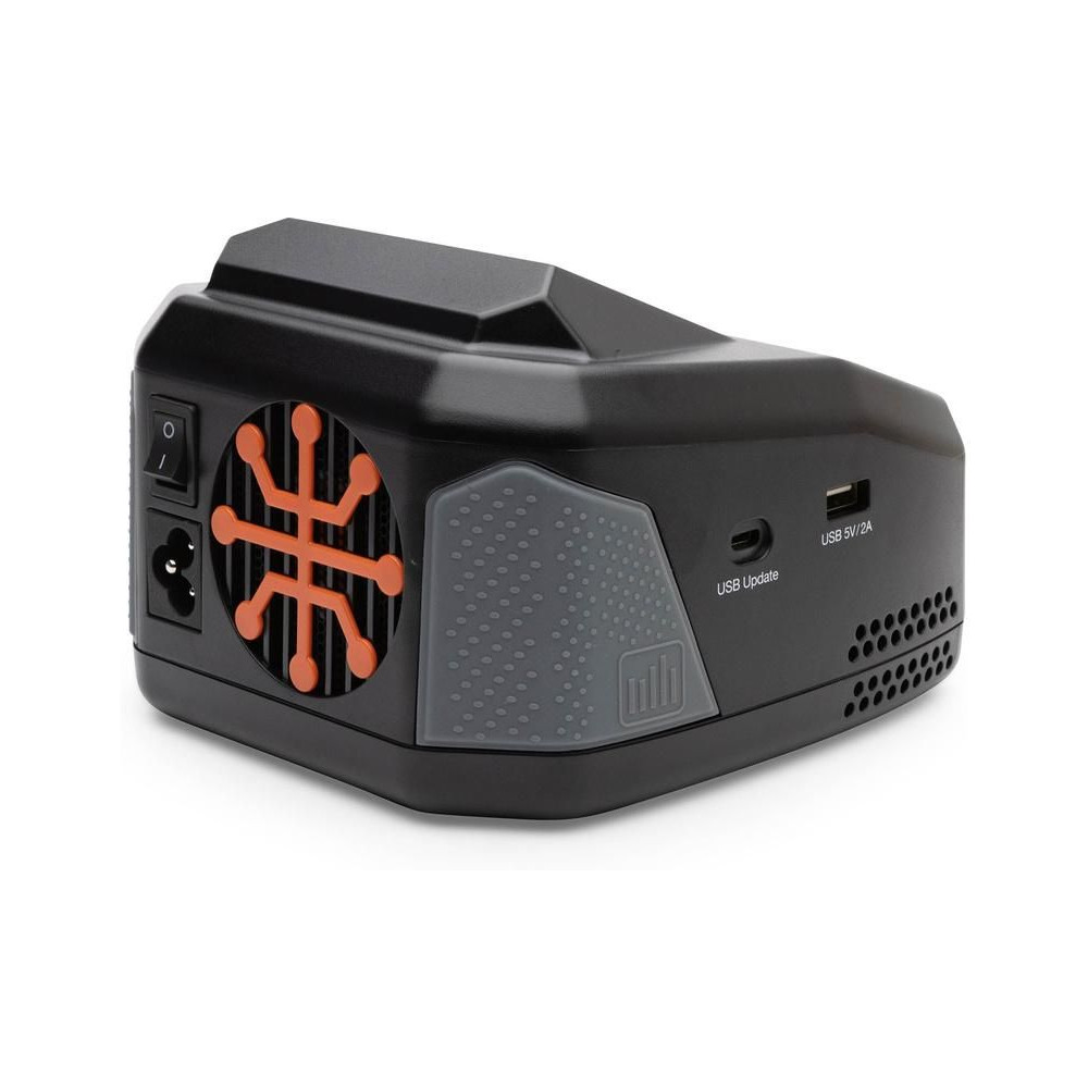 Az elegáns töltőtok tökéletesen elfér az íróasztalon és a szállítódobozban. A tápkábel levehető a könnyű szállítás érdekében. A gumi markolatok segítenek biztonságosan tartani a töltőt az akkumulátorok csatlakoztatása és eltávolítása közben. Az USB bemeneti és kimeneti portok lehetővé teszik a töltő firmware frissítését és a másodlagos eszközök töltését. További jellemzői közé tartozik a beépített hálózati kapcsoló és az alacsony zajszintű hűtőventilátor.
