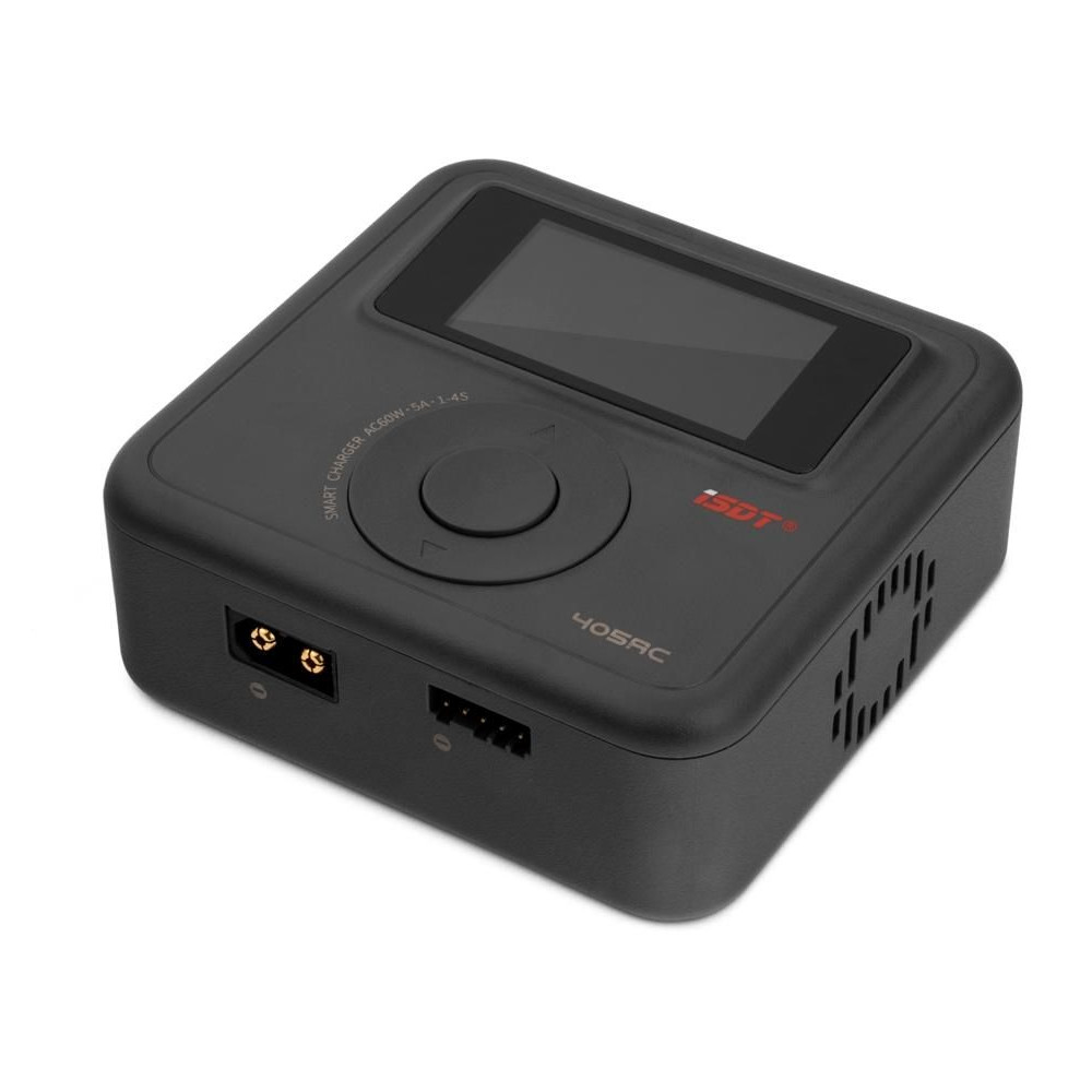 Az ISDT 405AC 60W-os miniatűr töltő egy intelligens töltő hálózati áramellátással, nagyon egyszerű és áttekinthető kezeléssel. A 405AC lehetővé teszi a gyakori cellatípusok (NiMH, LiPo, LiHV/ULiHV, LiFe, Li-ion, Pb) töltését és kisütését, valamint beépített négycsatornás balanszerrel is fel van szerelve, amely biztosítja a lítium akkumulátorok biztonságos töltését. A töltő színes LCD kijelzővel és három programozó gombbal van felszerelve, amelyek lehetővé teszik a paraméterek kényelmes és áttekinthető beállítását, a töltési folyamat vezérlését és nyomon követését.
