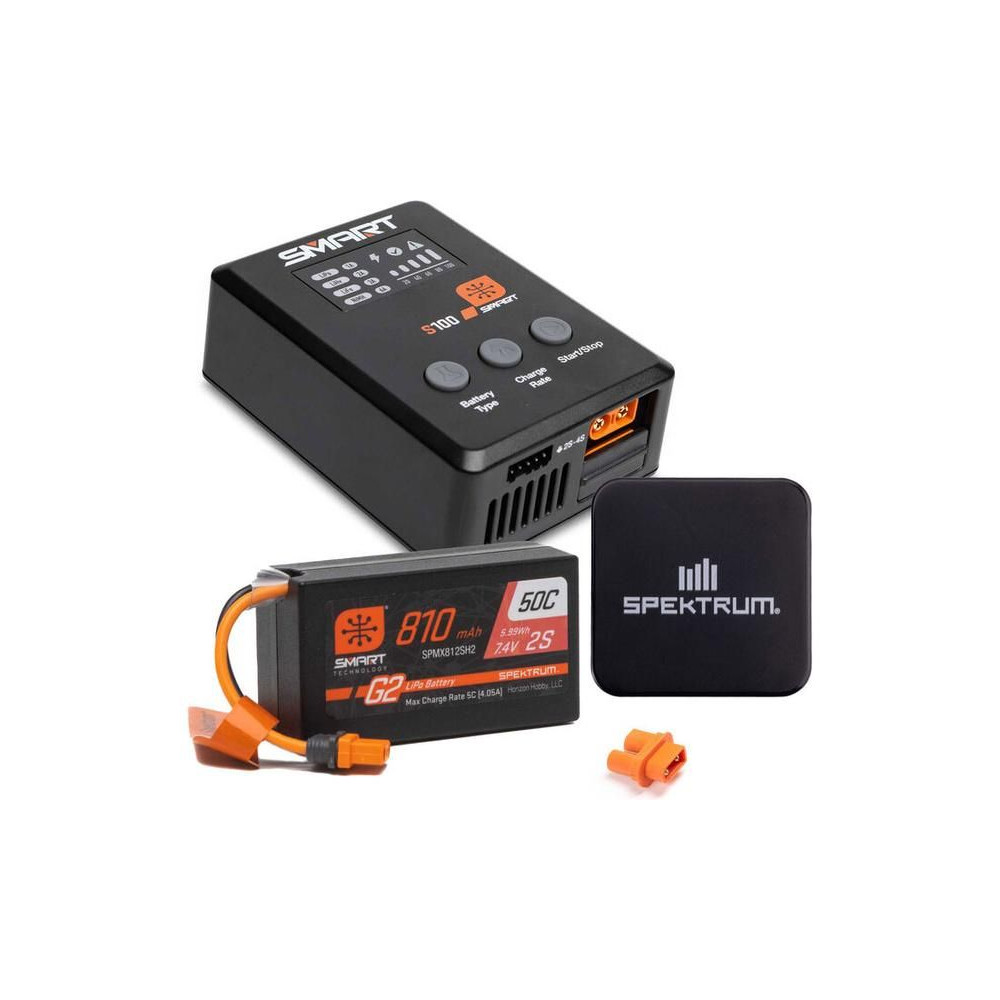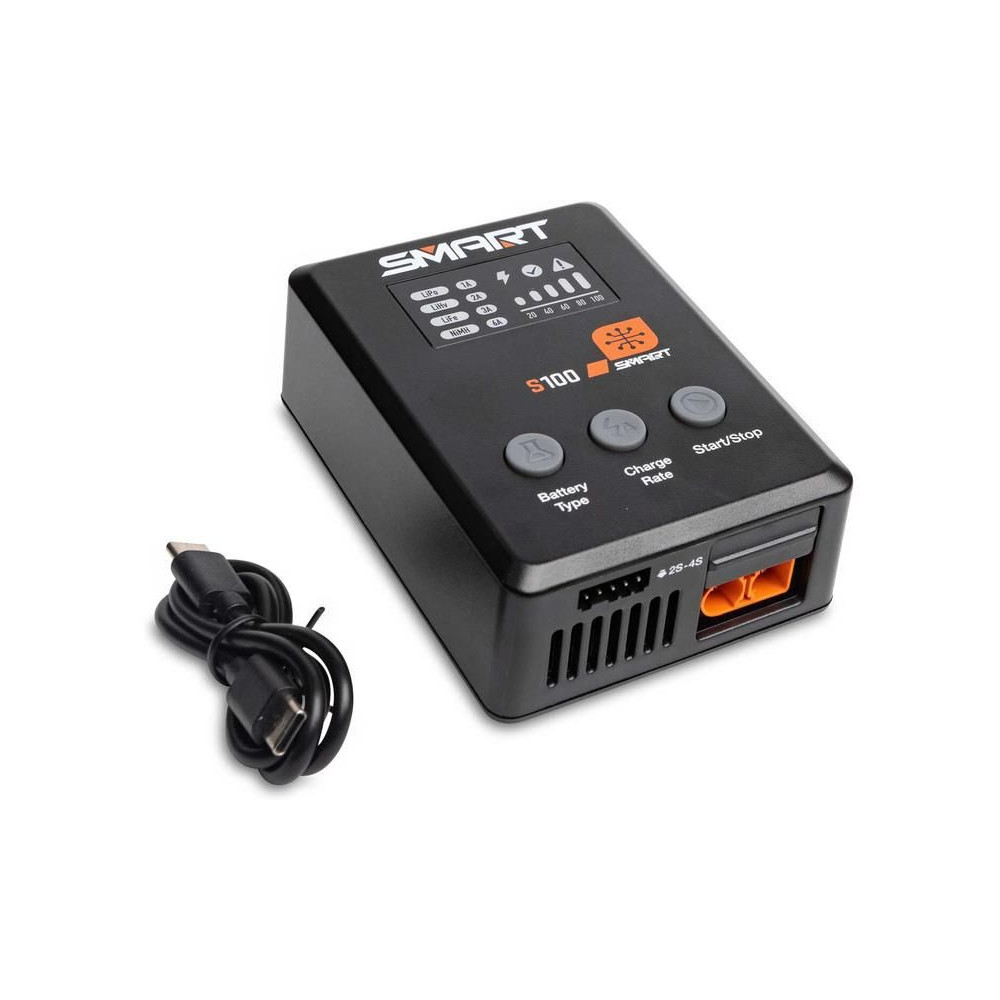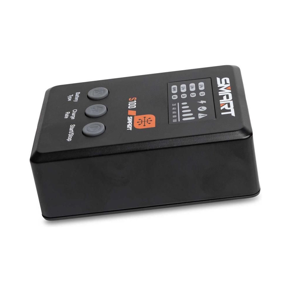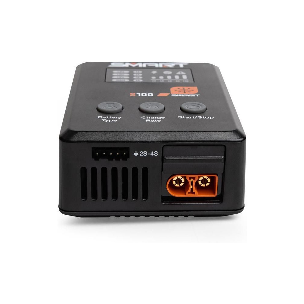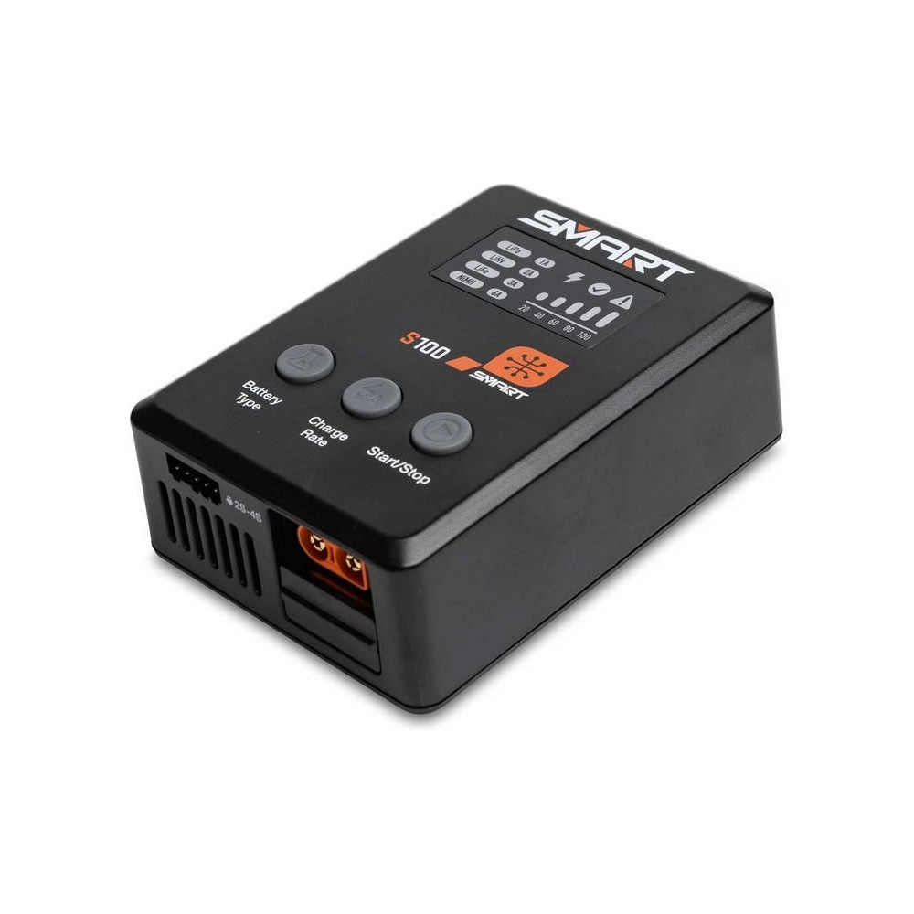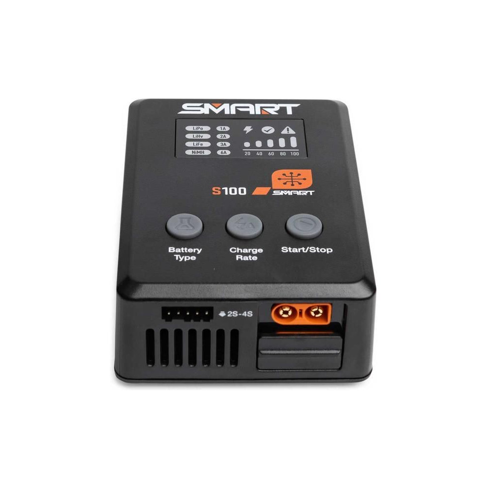 Az S100 töltőt a mellékelt Spektrum™ 65 W-os tápegység táplálja, és praktikus töltési megoldás kezdők számára. Minden, amire szükséged van, a csomagban található. A Smart G2 akkumulátorok adatkábellel rendelkeznek, amelyhez egyetlen egyszerű IC3® vagy IC5® csatlakozó csatlakoztatható – nincs szükség külön balanszkábelre. Számos szabványos hobbi akkumulátor töltésére használható, mint például 1S-4S LiPo, LiIon, LiHV, LiFe. Megjegyzés: Az S100 csak a Smart NiMH márkájú akkumulátorokat tölti.