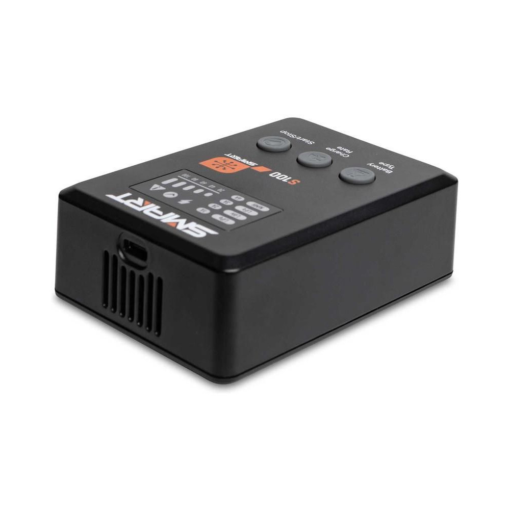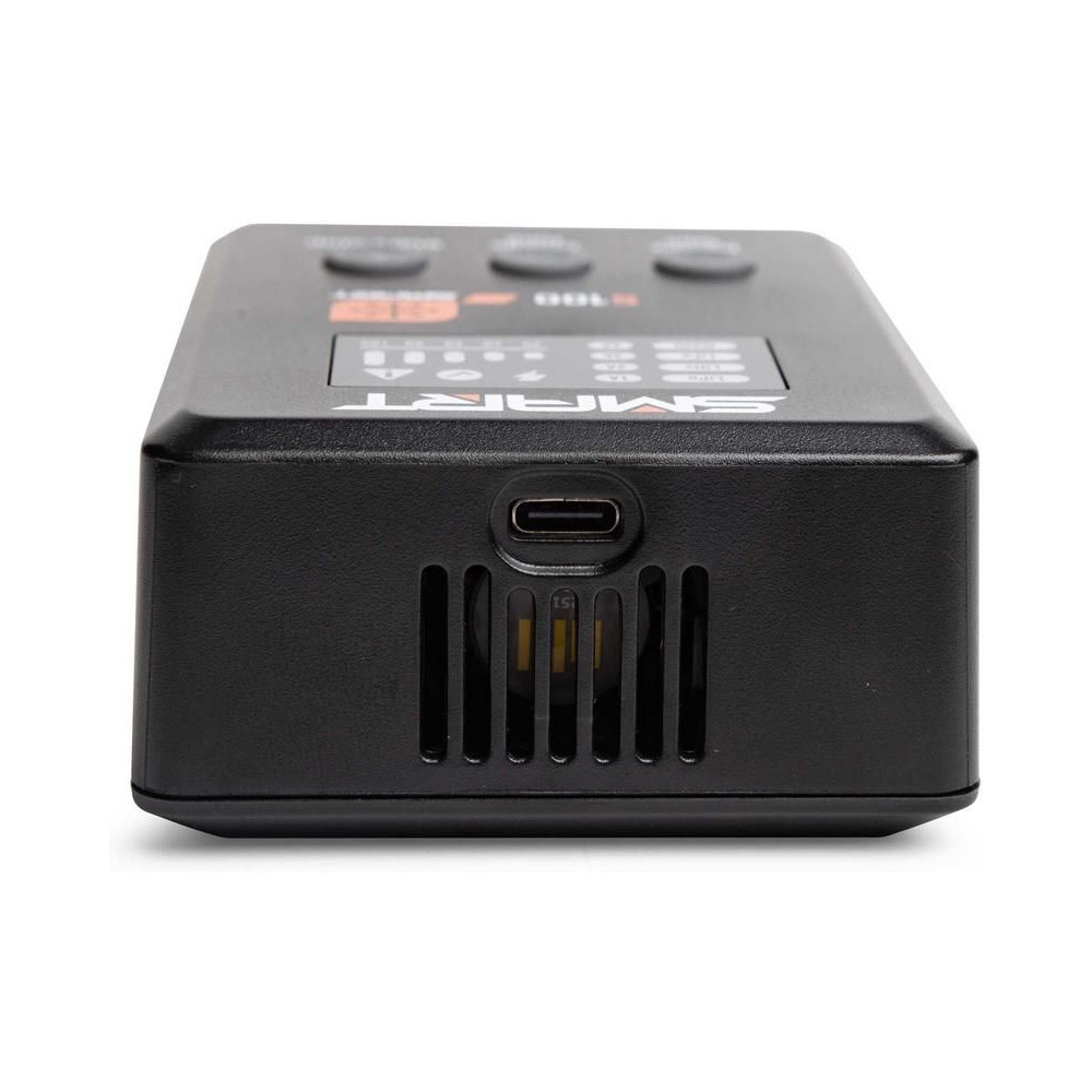 A Spektrum Smart S100 töltő akár 100 W teljesítménnyel, új felhasználói felülettel és az integrált IC3® vagy IC5® kimeneti porton keresztüli gyors töltési lehetőséggel rendelkezik az intelligens akkumulátorok számára. Bármely 1S-4S LiPo, LiIon, LiHV, LiFe és 1C-12C intelligens NiMH akkumulátor töltésére alkalmas. Három gombbal vezérelhető, árambeállítás: 1A, 2A, 3A és 6A. LED töltési állapotjelzés: 20%, 40%, 60%, 80% és 100%.