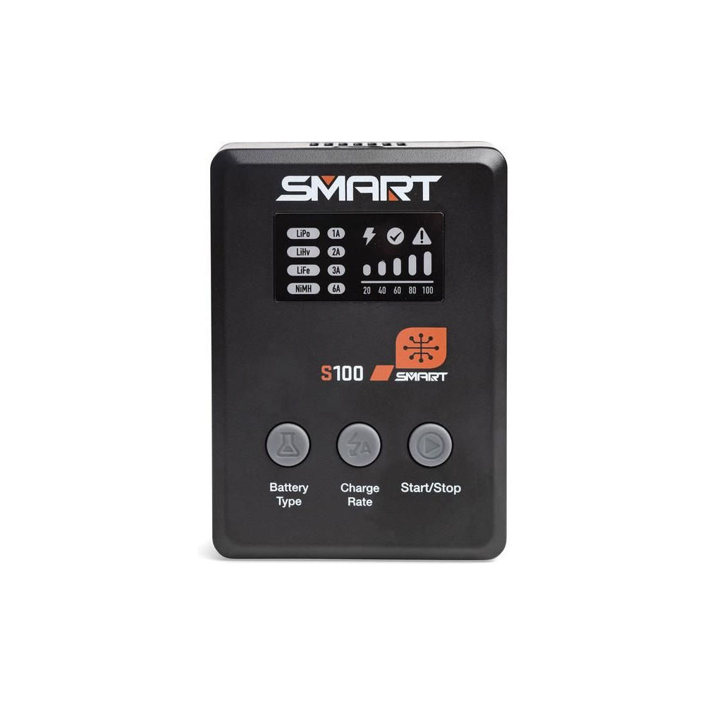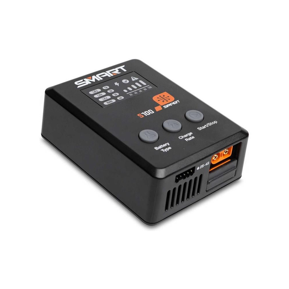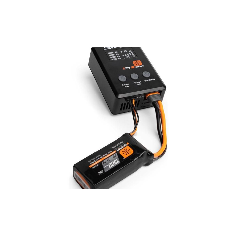 Az S100 töltőt a mellékelt Spektrum™ 65 W-os tápegység táplálja, és praktikus töltési megoldás kezdők számára. Minden, amire szükséged van, a csomagban található. A Smart G2 akkumulátorok adatkábellel rendelkeznek, amelyhez egyetlen egyszerű IC3® vagy IC5® csatlakozó csatlakoztatható – nincs szükség külön balanszkábelre. Számos szabványos hobbi akkumulátor töltésére használható, mint például 1S-4S LiPo, LiIon, LiHV, LiFe. Megjegyzés: Az S100 csak a Smart NiMH márkájú akkumulátorokat tölti.