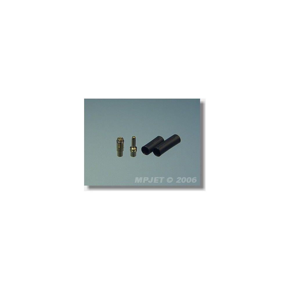 Precizní zlacené konektory MP JET velikost 1,8 - vhodné pro použití do cca 20A. 1 pár = 1 ks pin, 1 ks dutinka, 2 ks smršťovací trubky.