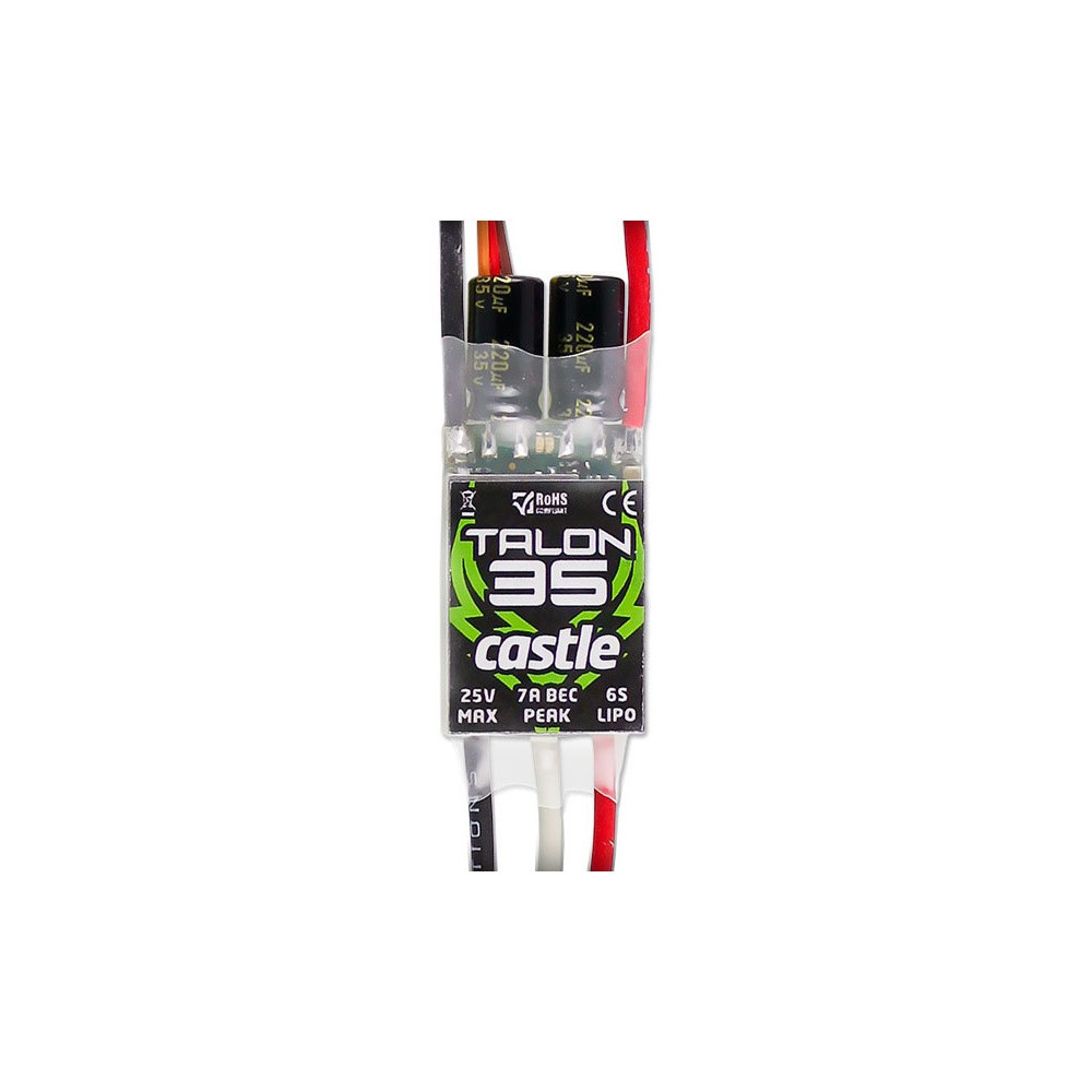 A Castle Talon 35 vezérlő a 450-es sorozatú RC helikopterekhez készült. Nagy teljesítményű kapcsoló BEC tápegységgel rendelkezik, amely biztonságosan képes stabil áramot szolgáltatni a gyors szervóknak ciklikus vagy egyensúlyi rotorhoz. Áram a motorra 35 A folyamatos, BEC 5,5 V 5 A folyamatos, 7 A csúcs 0,5 s-ig, 2 - 6 LiPo cellát táplál.