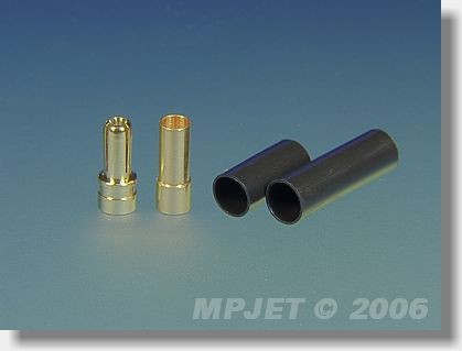 Pozlátené konektory MG 3,5 na kábel - páry. Používa sa na pripájanie ku káblu, kábel je v osi konektora. Maximálny prierez kábla 4 mm2. Riešenie je kompatibilné so štandardnými konektormi MC alebo G príslušnej veľkosti. Balenie obsahuje zmršťovacie trubičky.