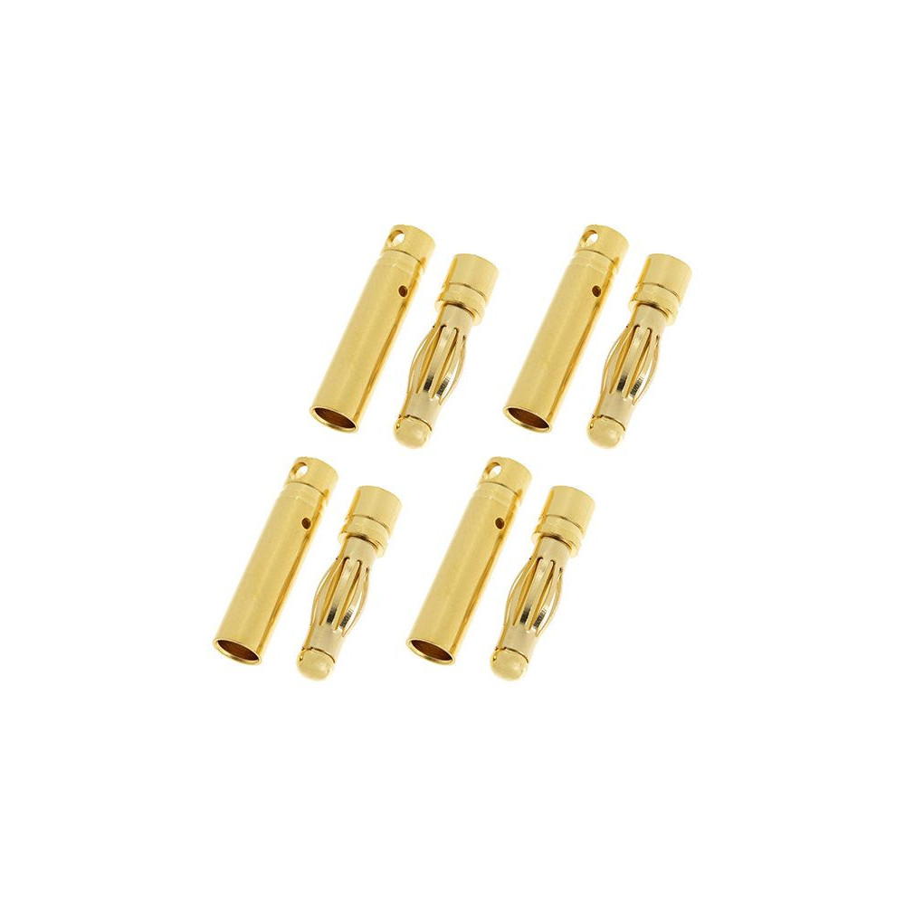 A csatlakozó aranyozott, a csapok és a hüvelyek átmérője 6 mm (4 pár a csomagban).
