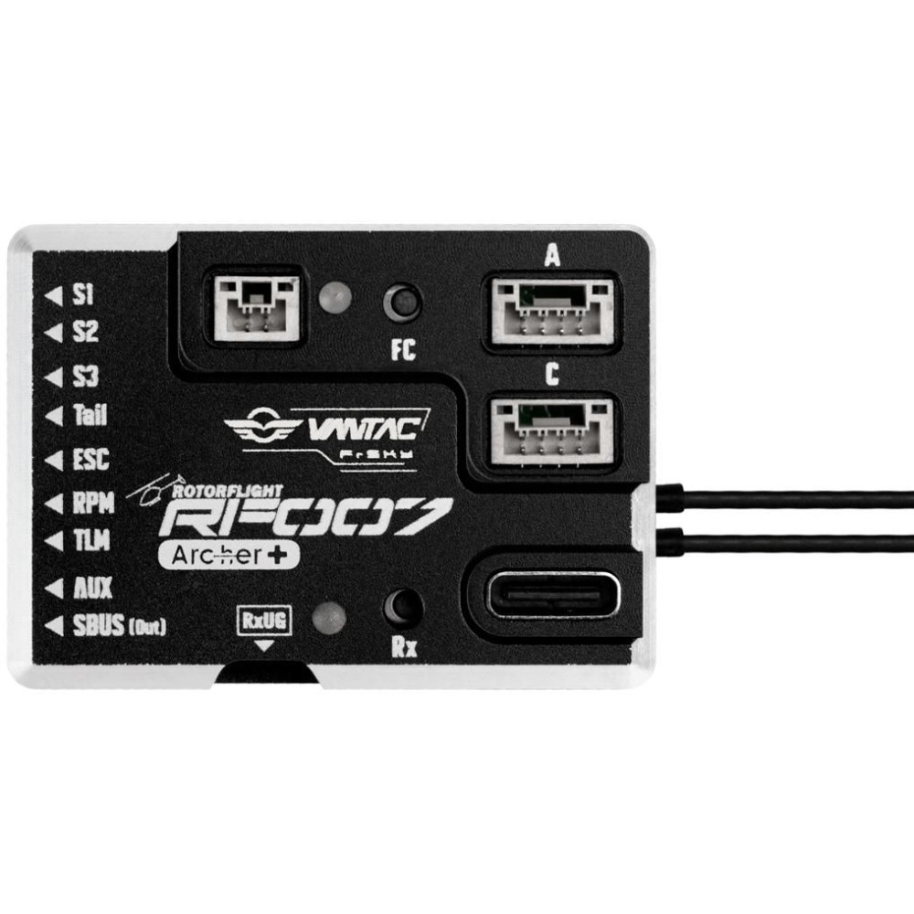Az FrSky VANTAC RF007 egy csúcskategóriás flybarless (FBL) egység, amely a legújabb Rotorflight 2.X technológiát használja. A beépített Access 2.4GHz RS vevőnek köszönhetően az RF007 számos funkciót kínál, ugyanakkor intuitív konfigurációt , problémamentes beállítást és valós idejű hangolást tesz lehetővé az ETHOS rádió interfészen keresztül.