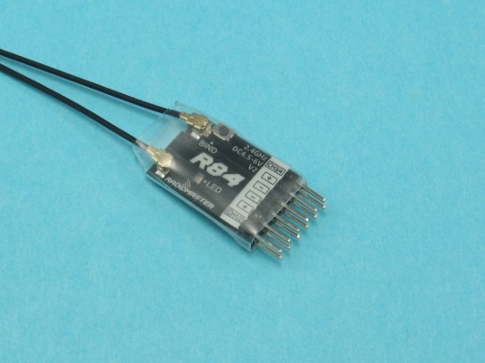 A Radiomaster R84 vevőegység egyszerű és kis modellekhez készült.
