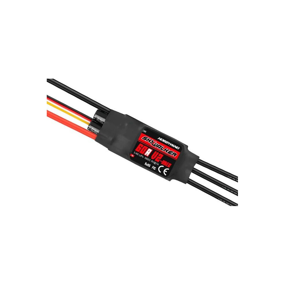 A kefe nélküli, érzékelő nélküli váltakozó áramú motorokhoz tervezett, programozható mikroprocesszoros vezérlők új generációja, amelyet a legújabb félvezető technológia felhasználásával terveztek, kiváló teljesítményjellemzőkkel, miközben nagyon egyszerű és felhasználóbarát kezelést biztosít. A szabadidős modellrepülőgépekben NiCd/NiMH és LiPo/Li-ion akkumulátorokkal táplált váltóáramú villanymotorok fordulatszámának szabályozására szolgál. A vezérlő egy nagy teljesítményű BEC kapcsoló tápegységgel van felszerelve, amely a vevőt és a szervókat a meghajtó akkumulátorról táplálja. A vezérlő egyszerű beállításához a külön mellékelt speciális Hobbywing LED programozó doboz szolgál.