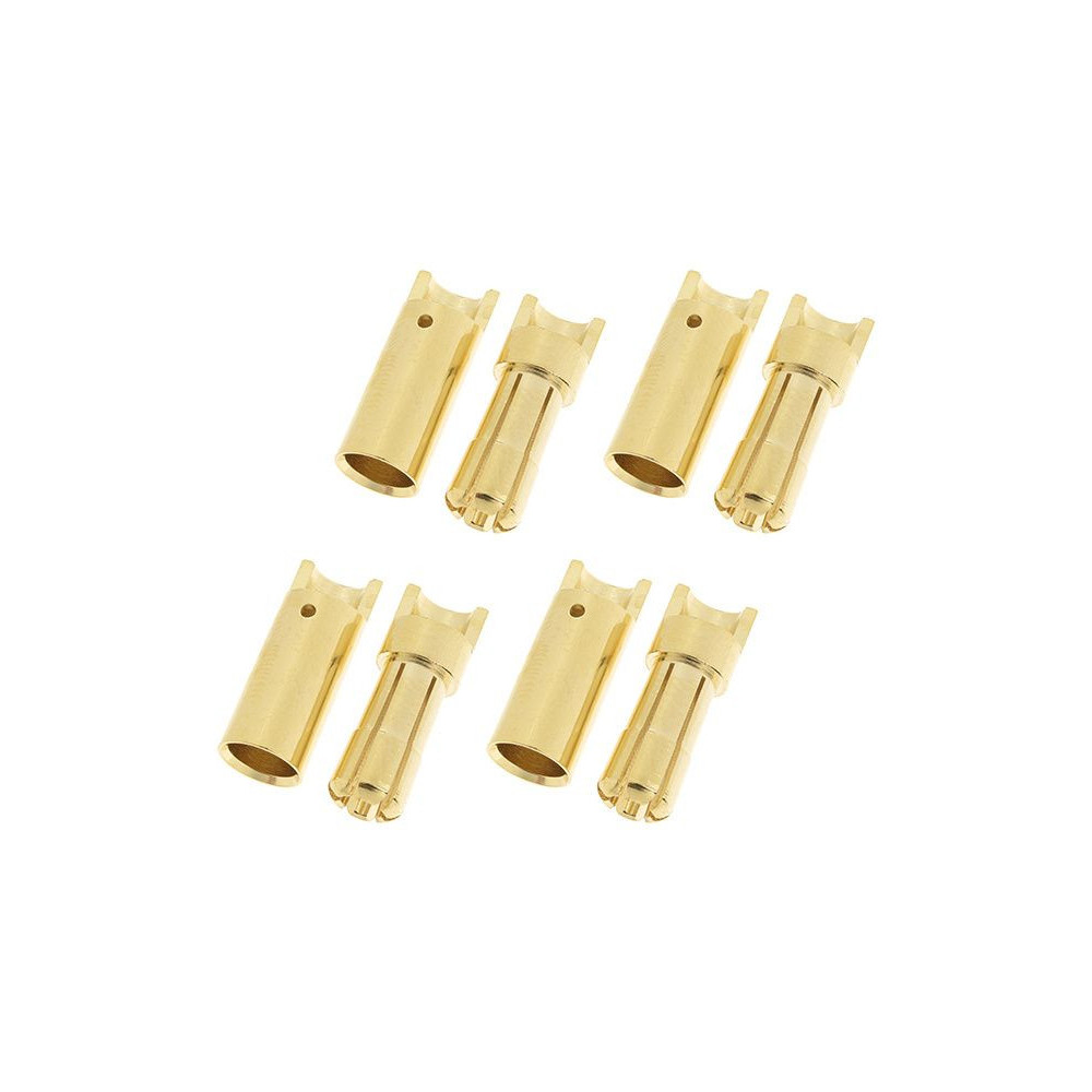 A csatlakozó aranyozott, a csapok és a hüvelyek átmérője 6 mm (4 pár a csomagban).