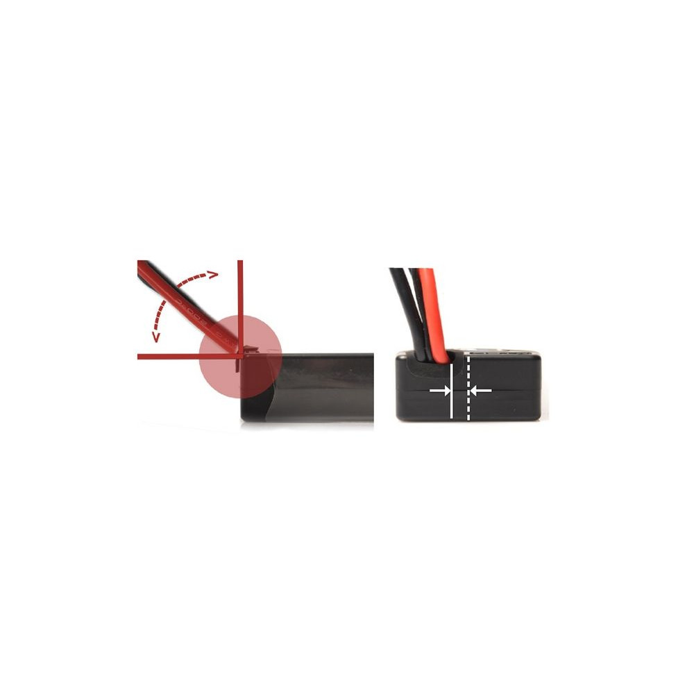 A kábelkivezetésen lévő gumitömítés ideálisan védi az együtt elhelyezett szilikonkábelt és a mérlegcsatlakozót. Ez ismét kissé eltolva van a középponttól, hogy a kábelek ne ütközzenek az akkumulátoroszlopba, és könnyen kivezethetők az egyes akkumulátorrekeszekből 0° - 90°-os szögben.