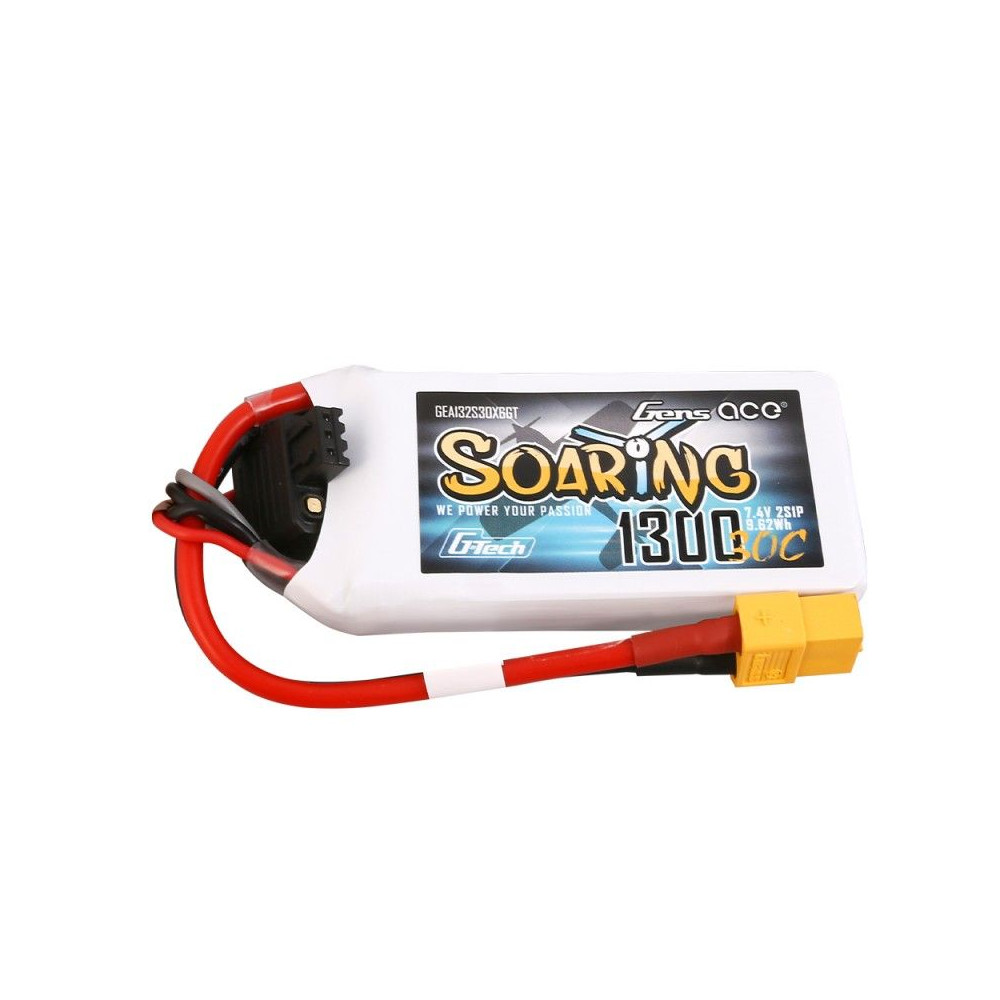Gens ace G-Tech Soaring 1300mAh 7.4V 30C 2S1P Lipo Battery Pack with XT60 plug
