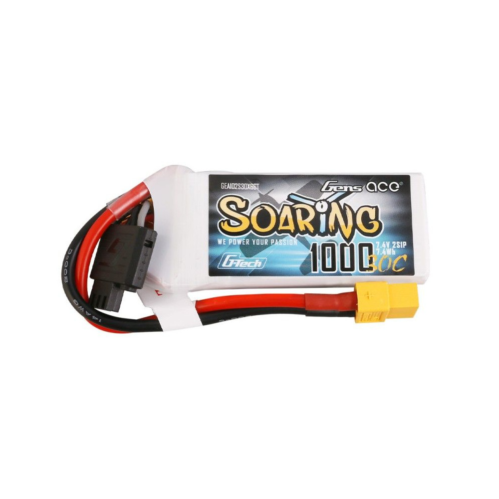 Gens ace G-Tech Soaring 1000mAh 7.4V 30C 2S1P Lipo Battery Pack with XT60 Plug