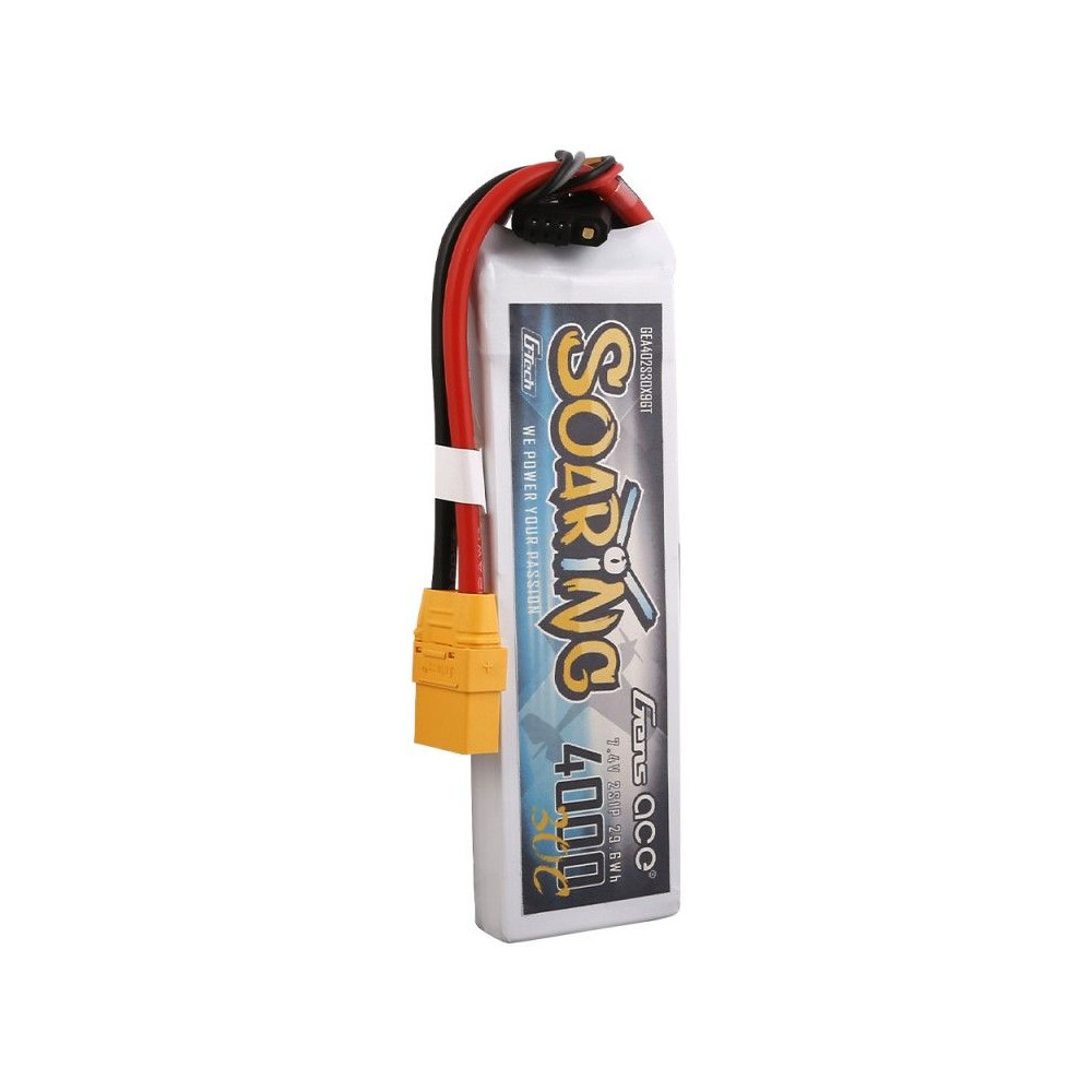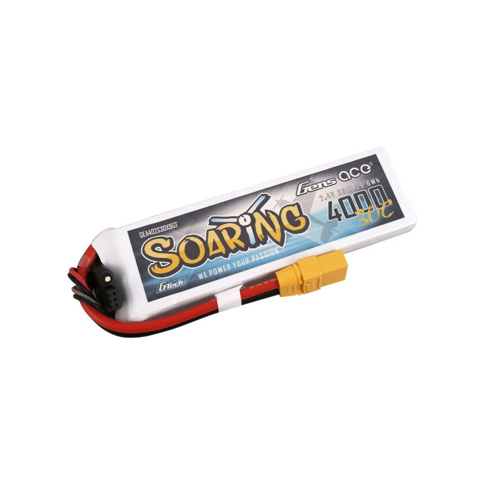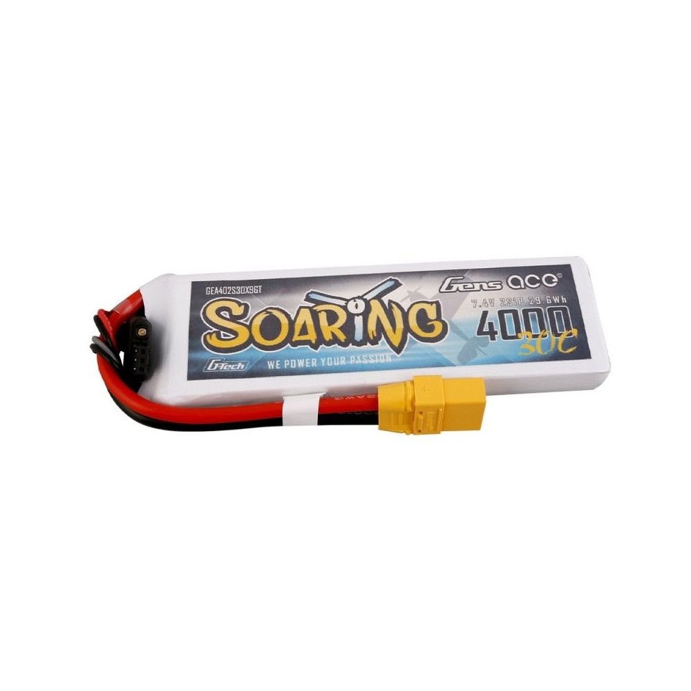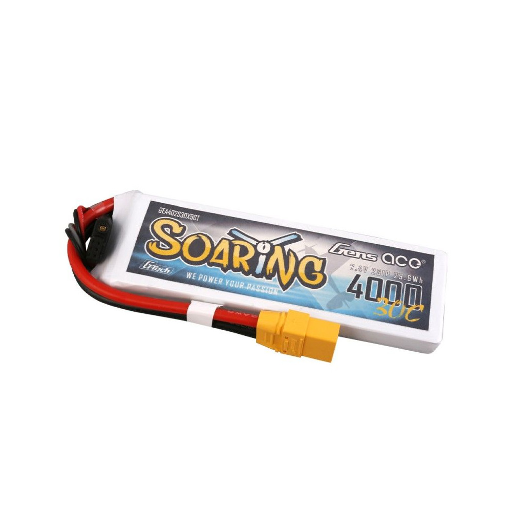 Gens ace G-Tech Soaring 4000mAh 7.4V 30C 2S1P Lipo Battery Pack with XT90 plug