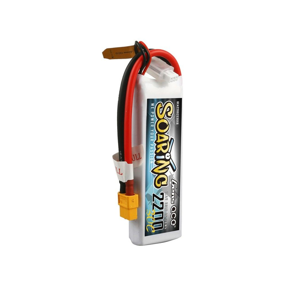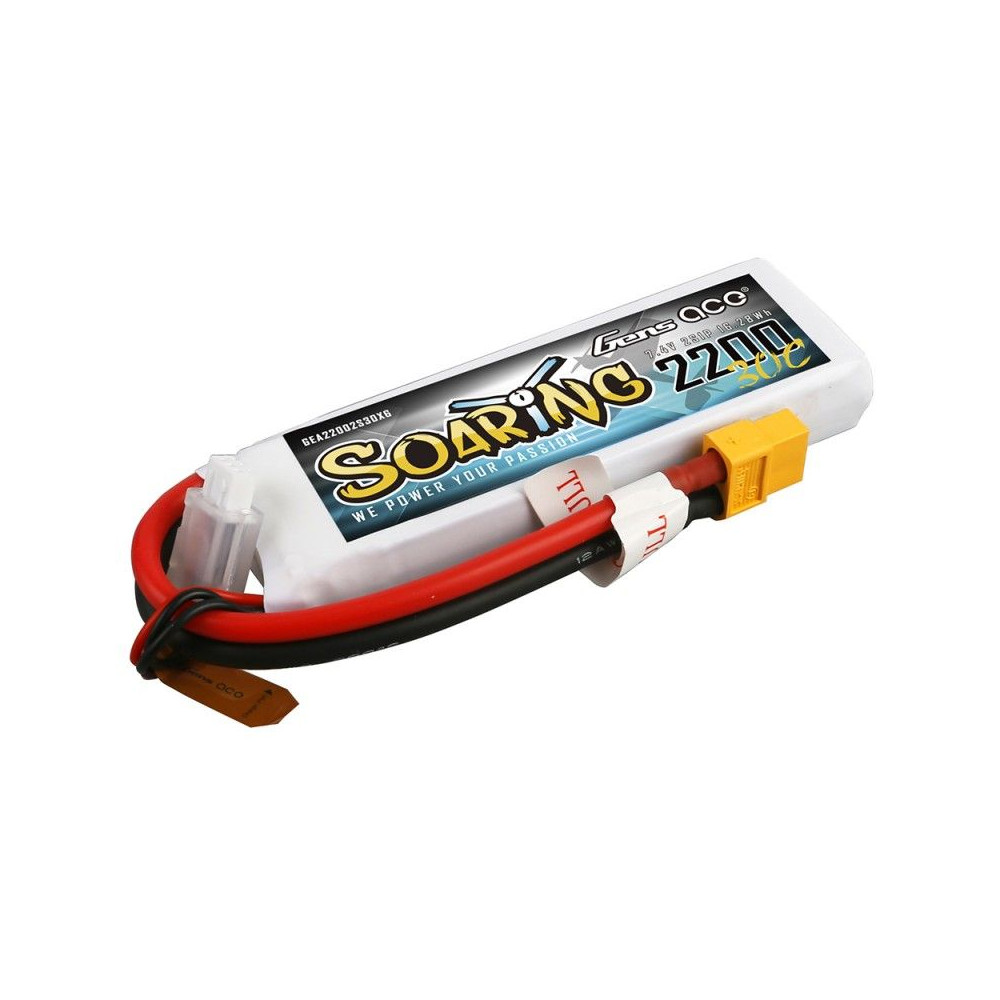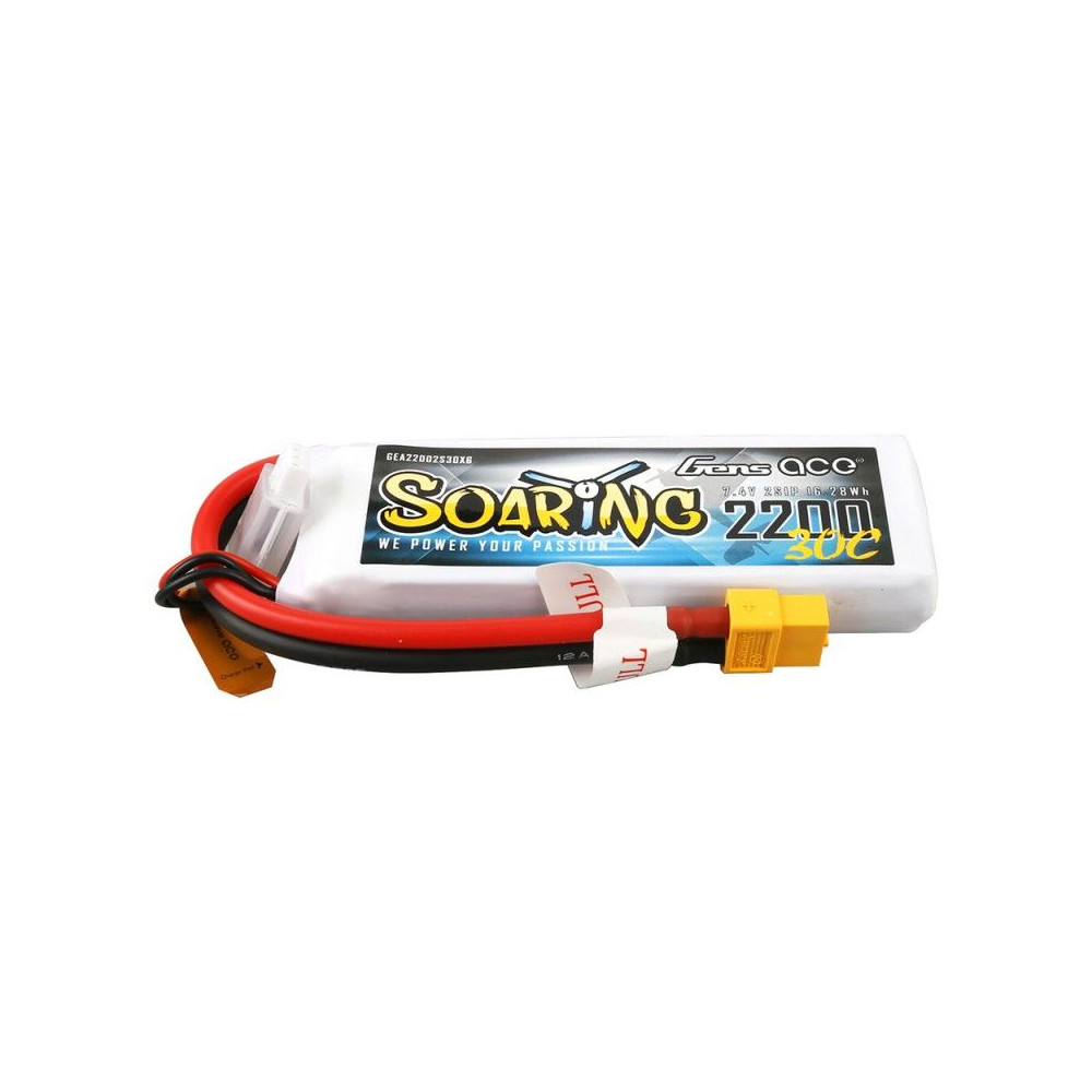 Gens ace Soaring 2200mAh 7.4V 30C 2S1P Lipo Battery Pack with XT60 Plug