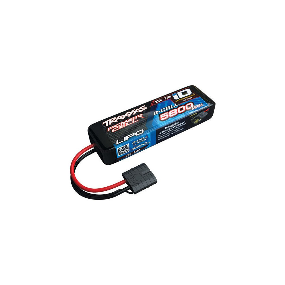 2 cellás 7.4 V 5800 mAh Traxxas LiPo akkumulátor az RC autómodellekhez. Méretek 25 x 45 x 135 mm, tömeg 305g. Az akkumulátor új Traxxas iD csatlakozóval van felszerelve.