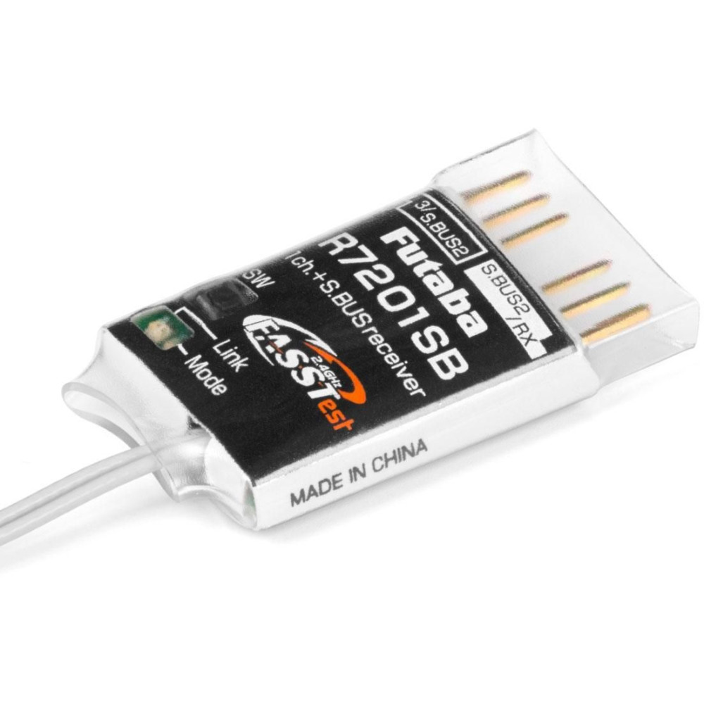 Kicsi és nagyon könnyű Futaba 2,4 GHz-es telemetria vevő egy pár teljes tartományú diverzitású antennával. Elsősorban drónok és más, S.BUS vagy S.BUS2 buszon keresztül kommunikáló vezérlőegységeket használó modellekben való használatra tervezték; kompakt mérete és nagyon könnyű súlya alkalmassá teszi S.BUS/S.BUS2 szervókkal ellátott kis repülőgépmodellekhez, és kiválóan alkalmas tartalékvevőnek más FASSTest vevőkészülékekkel való kettős vételezésben. Az R7201SB választható csatornamódjai lehetővé teszik, hogy az egyik aljzat klasszikus PWM csatorna kimenetként (3. csatorna)/S.BUS2 vagy S.BUS portként működjön; a másik aljzat S.BUS2 portként funkcionál, vagy egy második vevő csatlakoztatására szolgál kettős vevő üzemben. A kétirányú kommunikációra szolgáló S.BUS2 port lehetővé teszi S.BUS2 szervók, telemetriai érzékelők és más kompatibilis eszközök csatlakoztatását.