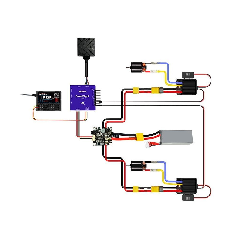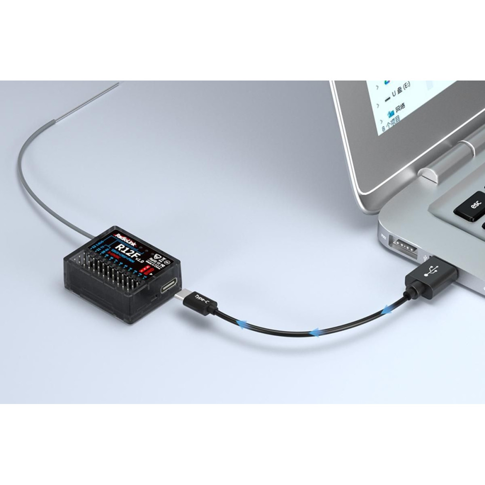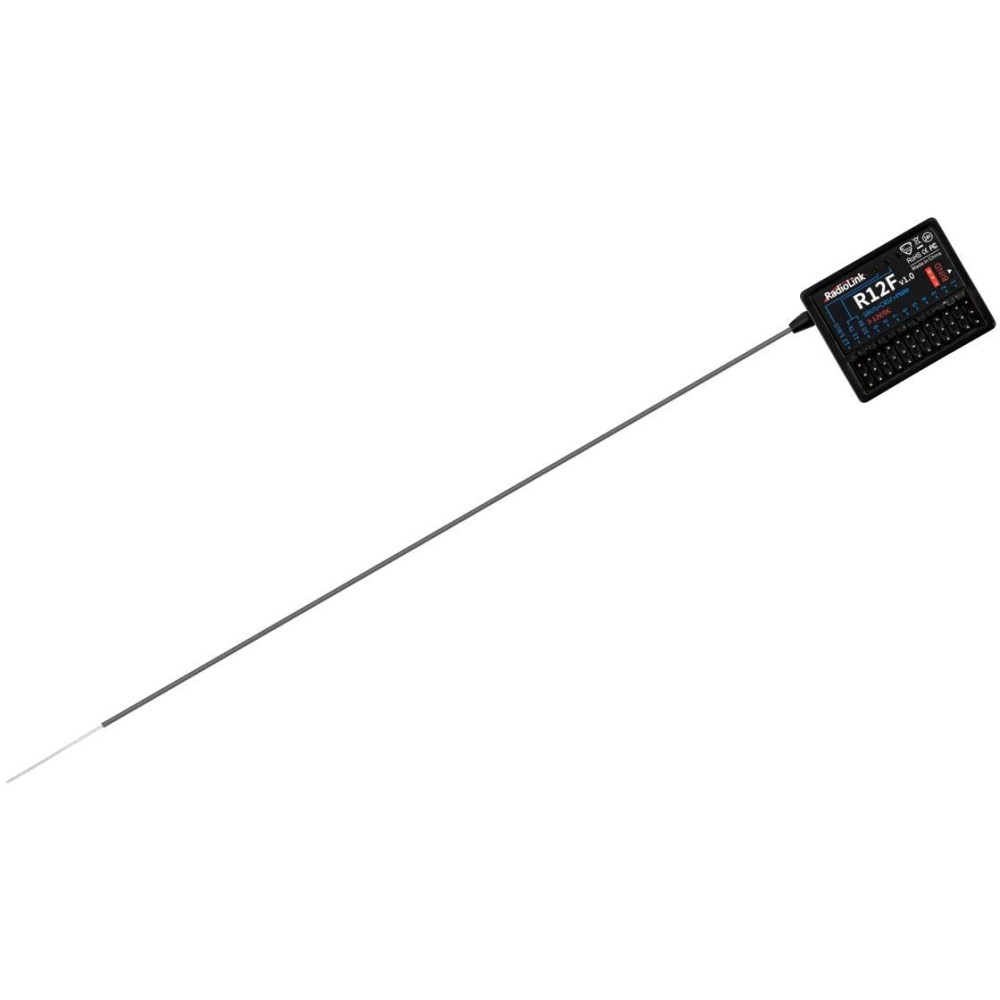 A Radiolink R12F 2.4GHz egy 12 csatornás FHSS vevő, telemetria nélküli frekvenciaugratással, amely kompatibilis a Radiolink T12D és T16D adókkal. Négy üzemmódot kínál: