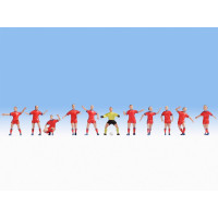 Sada figúrok obsahuje 6 figúrok. Dve z nich sú pretekári v červených pretekárskych kombinézach....