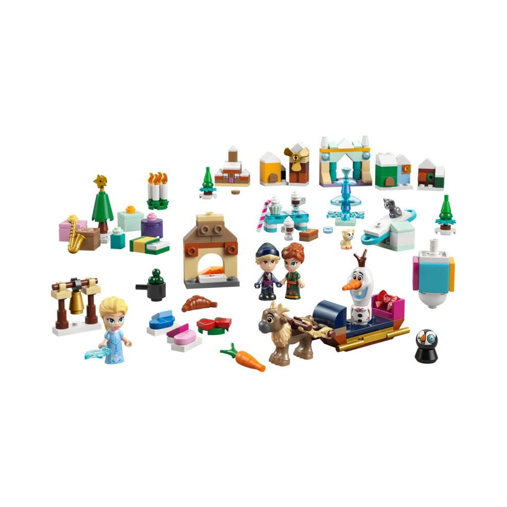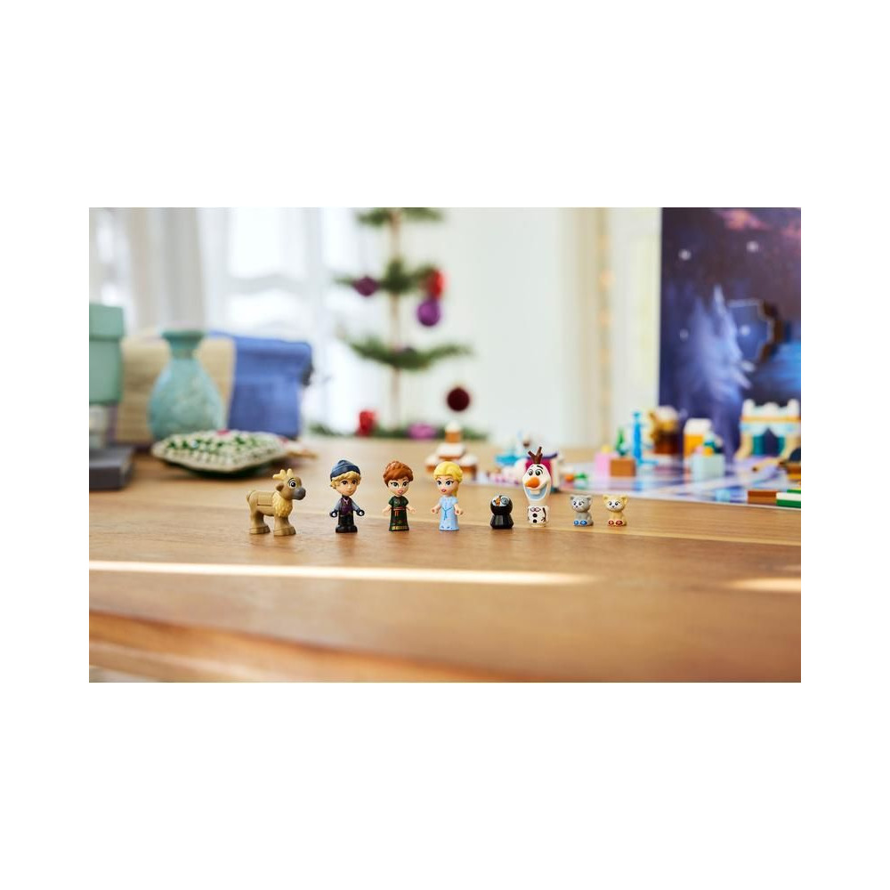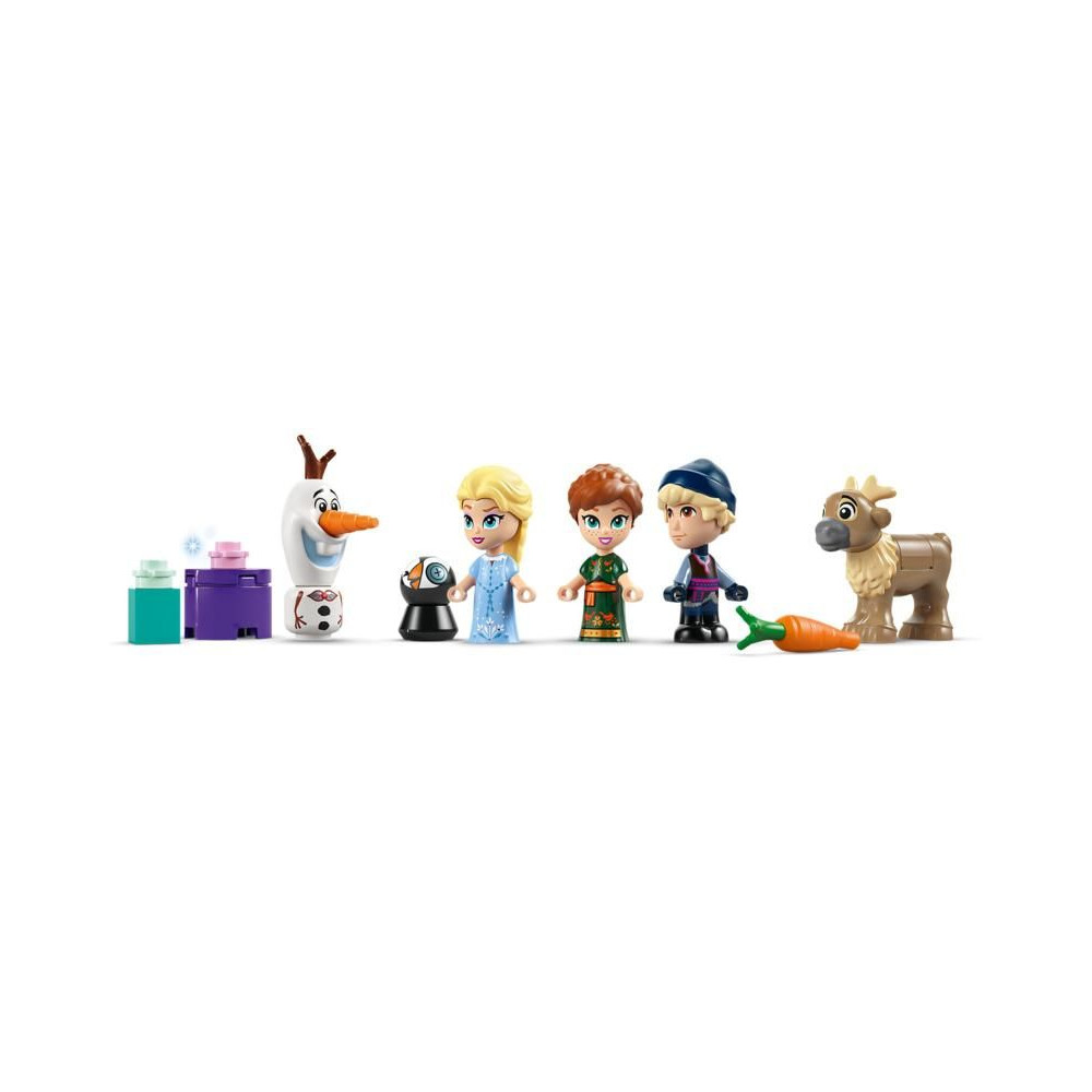 - Disney karakterek és még sok más - Az adventi naptár tartalmaz egy LEGO® ǀ Disney karaktert: Elzát, Annát, Kristoffot, Olafot és Sven-t, 2 LEGO ǀ Disney cica figurát, Arendelle miniatűr kastélyt és egy jégkristály fát