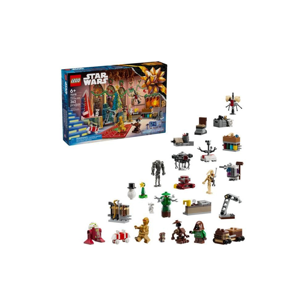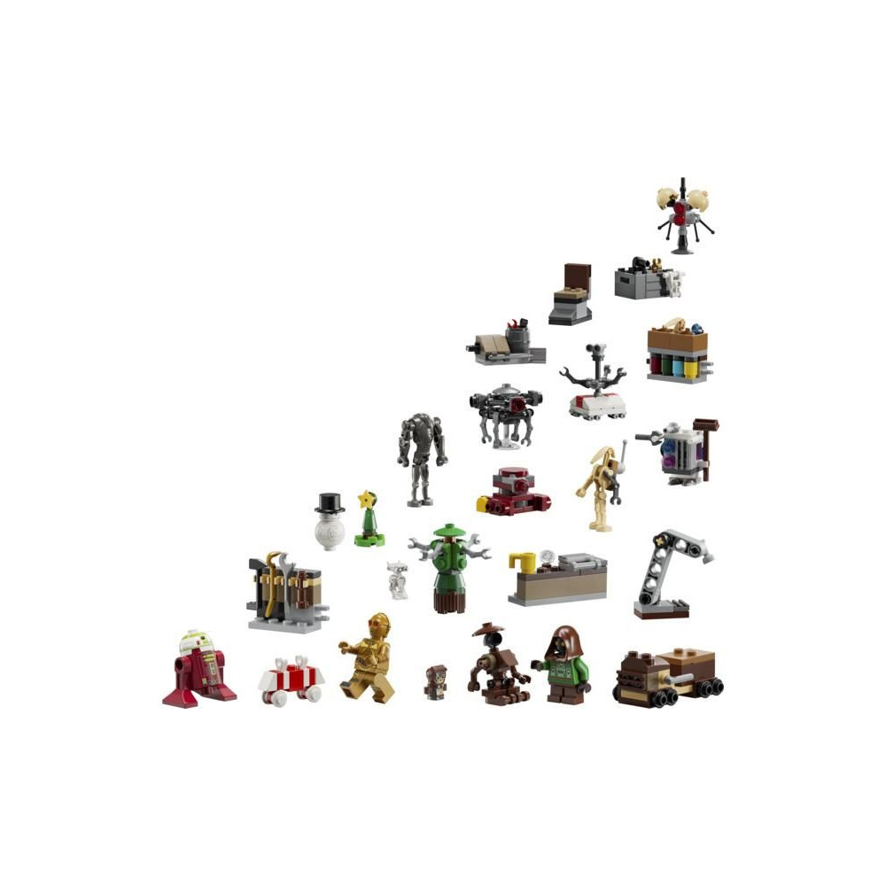 - LEGO® Star Wars™ figurák - LEGO C-3PO és Jawa minifigurák (karácsonyi), LEGO Babu Frika figura és 5 LEGO droid figura: R7-A7, BD-72, Scrap harci droid, BB-8 (hóember) és szuper harci droid