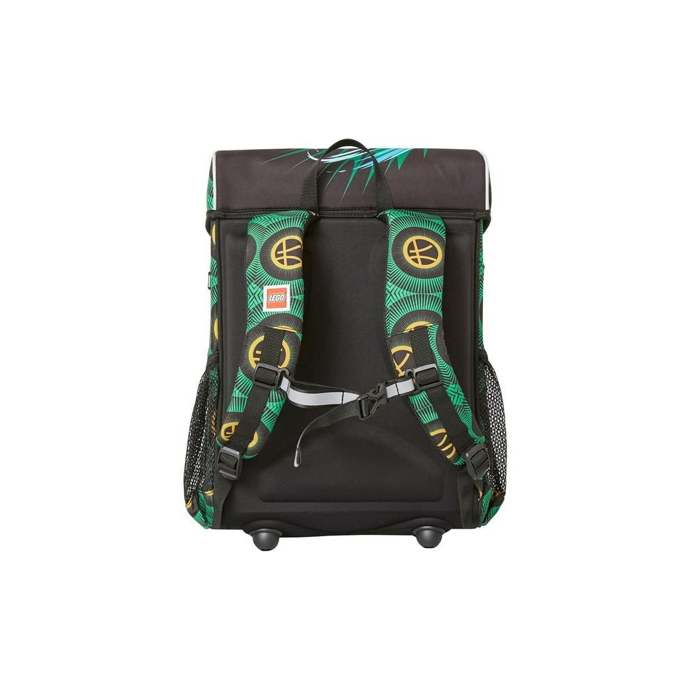 A fő zsebben nemcsak egy órarendet találsz, hanem egy kulcscsatot is, amelyhez például egy LEGO pénztárcát vagy egy LEGO zsebet rögzíthetsz. Az EASY iskolai aktatáska masszív fedéllel rendelkezik, műanyag zárral, amely könnyen nyitható egy kézzel. A táska stabilitásának megőrzése érdekében nyitott fedél esetén a megerősített alj alján műanyag lábak találhatók, amelyek a szennyeződésektől és a nedvességtől is védik a táskát. Az aktatáska víz- és szennyeződéstaszító anyagból készült, a táska minden oldalán fényvisszaverő elemek találhatók.