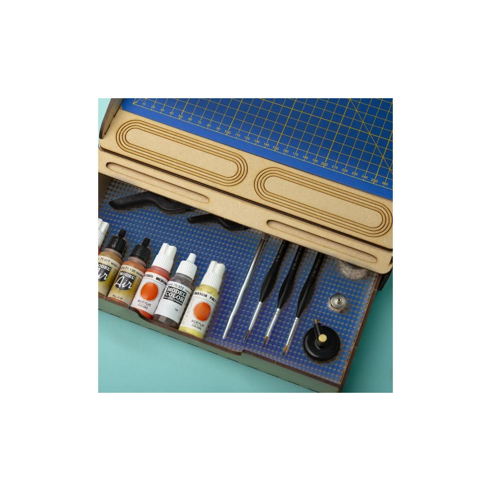 A 0,5 m x 2 m méretű Modelcraft puha, csúszásmentes szőnyeg mindenhol alkalmas, ahol szerszámait és különböző tárgyait a helyén kell tartania. Egy fiókban nem változtatják a helyüket, de egy tárolódobozban vagy szerszámosládában a helyén maradnak. Vágja ki a szükséges formátumot.