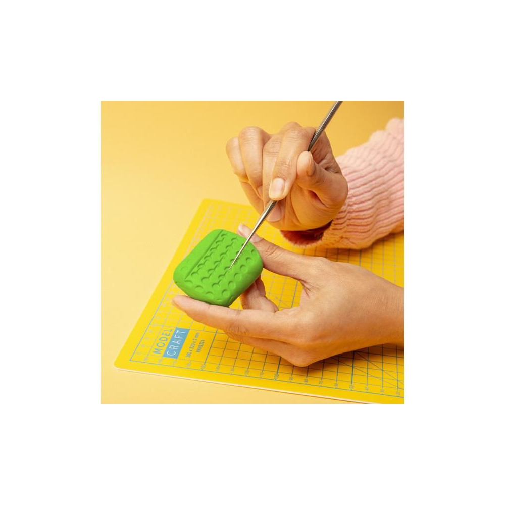 A Modelcraft vágószőnyeg A2-es méretben (600x450mm) 3 rétegű PVC szendvicsből készült, 2mm vastagságú, amely nem repedezik vagy deformálódik. A csúszásmentes felület lehetővé teszi a biztonságos vágást, a párna védi a penge éleit és precíz vágást biztosít. Kézművesek, modellezők és szakemberek számára.