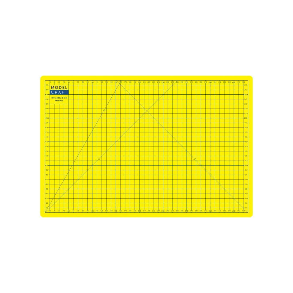 A Modelcraft vágószőnyeg A3-as méretben (450x300mm) 3 rétegű, 2mm vastag PVC szendvicsből készül, amely nem repedezik vagy deformálódik. A csúszásmentes felület lehetővé teszi a biztonságos vágást, a párna védi a penge éleit és precíz vágást biztosít. Kézművesek, modellezők és szakemberek számára.