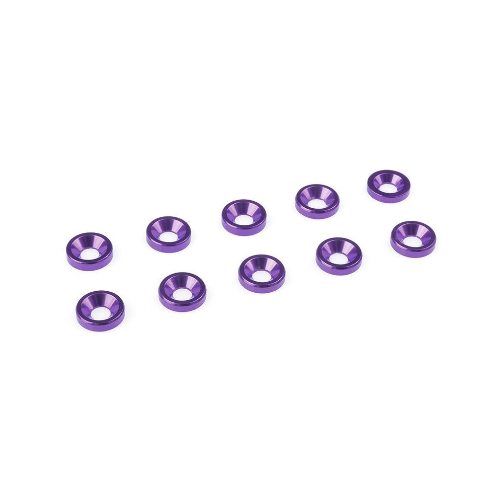 Alumínium alátét M3-as csavarhoz, süllyesztett peremmel. Lila eloxált. A csomag 10 db-ot tartalmaz.
