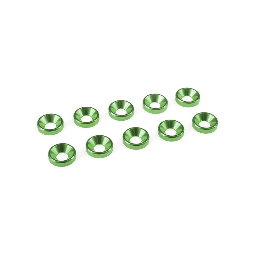 Alumínium alátét M4-es csavarhoz, süllyesztett peremmel. Zöld eloxált. A csomag 10 db-ot tartalmaz.