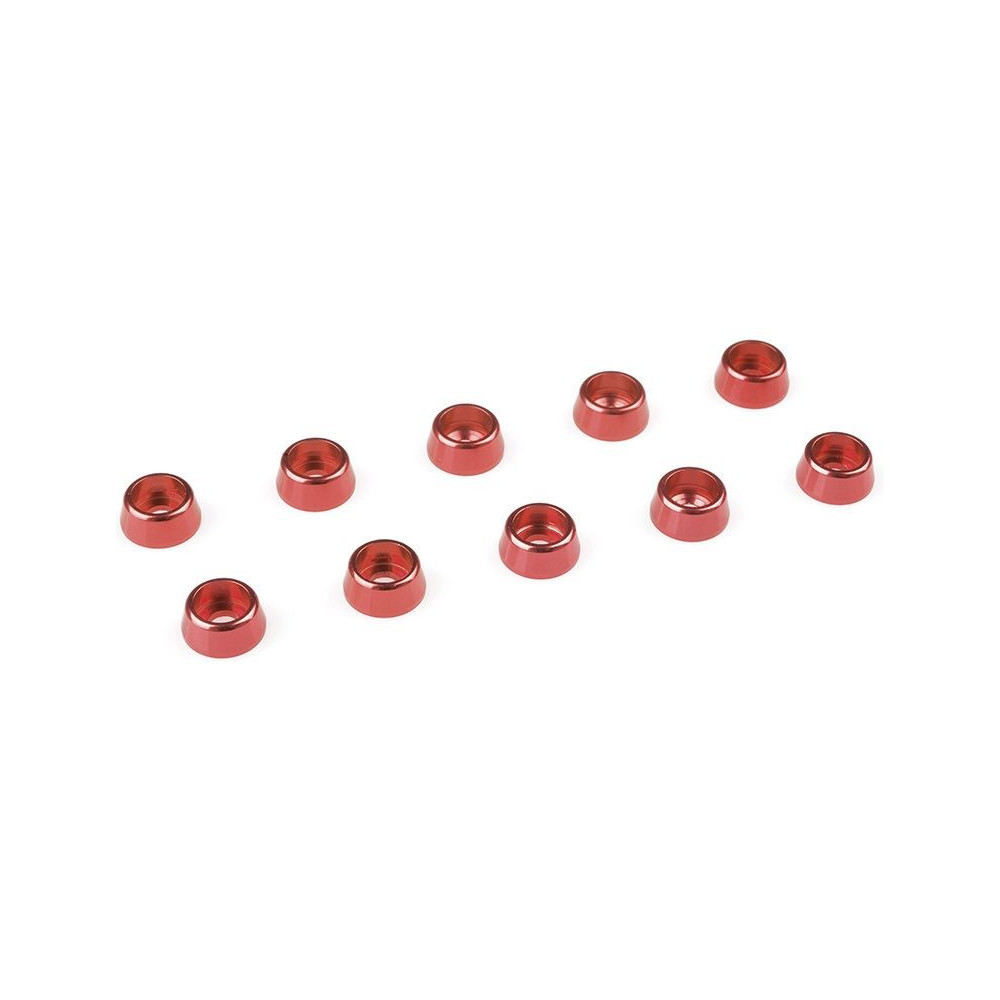 Piros eloxált alátét M2,5 hengeres fejű csavarfejhez. Külső átmérő 7 mm, anyaga alumínium. A csomag összesen 10 alátétet tartalmaz.