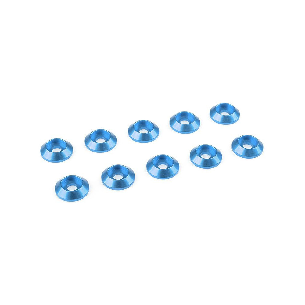 Kék eloxált alátét M3 félgömbfejű csavarfejhez. Külső átmérő 10 mm, anyaga alumínium. A csomag összesen 10 alátétet tartalmaz.