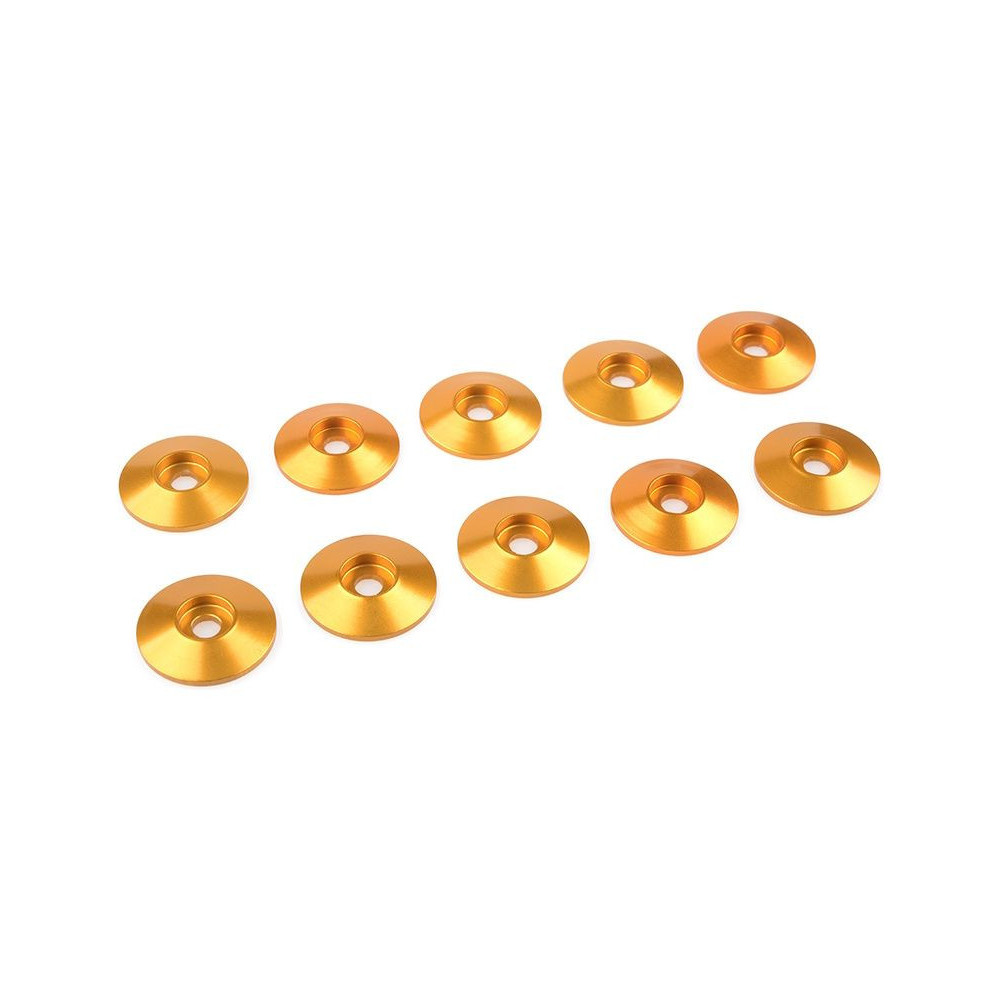 Arany eloxált alátét M3 félgömbfejű csavarfejhez. Külső átmérő 15 mm, anyaga alumínium. A csomag összesen 10 alátétet tartalmaz.