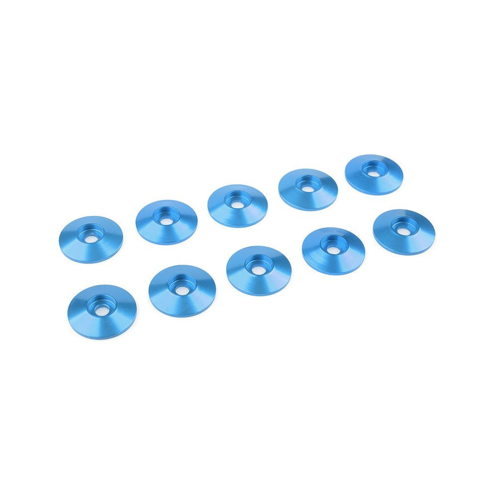 Kék eloxált alátét M3 félgömbfejű csavarfejhez. Külső átmérő 15 mm, anyaga alumínium. A csomag összesen 10 alátétet tartalmaz.
