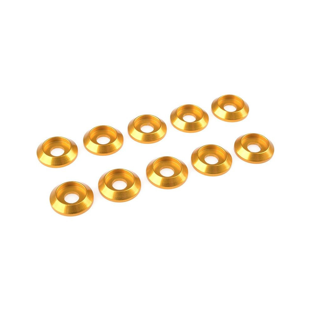 Arany eloxált alátét M4 félgömbfejű csavarfejhez. Külső átmérő 12 mm, anyaga alumínium. A csomag összesen 10 alátétet tartalmaz.