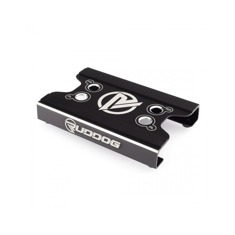 Bár az RC versenyautó felfüggesztése az egyik legfontosabb alkatrész a pályán, mégis eléggé fájdalmas tud lenni. A Ruddog Products alumínium autóállványai szilárd alapot nyújtanak a futómű beállításához és javításához, és megjelölt lyukakat is tartalmaznak a lengéscsillapítók karbantartásához. A modern fekete és ezüst kivitelű alumínium állványok remekül mutatnak a boxutcában, amikor a pályán versenyzel. A közúti autóállványok és egy 1/10 méretarányú változat a terepjáró autókhoz már kaphatók.