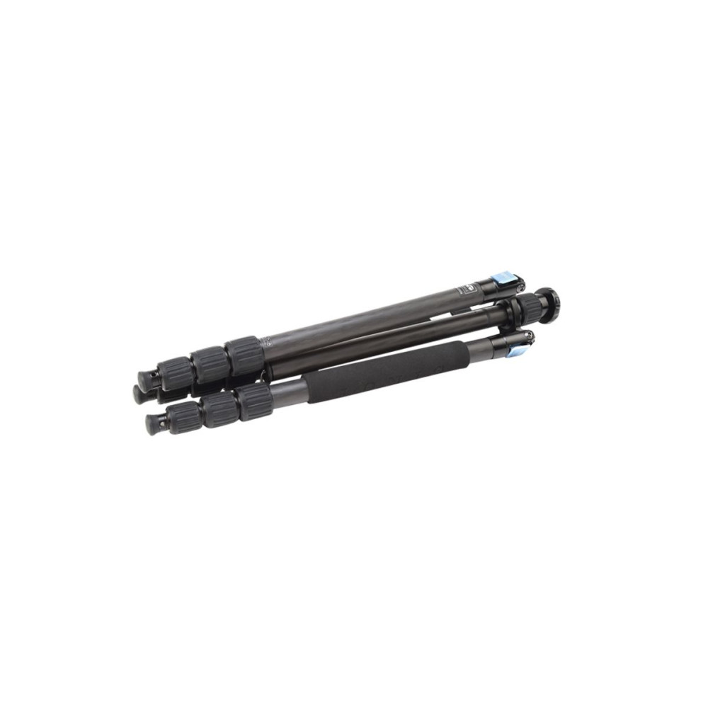 Egy teljes méretű állvány, amelynek maximális magassága 178 cm, terhelhetősége pedig 18 kg, a lábak 180°-os elforgatásának köszönhetően, ahol a középső rúd és a fej az összecsukott lábak között van elrejtve, hihetetlenül 52 cm-re hajtható össze. Az alacsony, 1,76 kg-os súlyt a karbonszerkezet garantálja, és nem sokban különbözik az utazóállványoktól. Ezekkel ellentétben azonban teljes körű megoldást nyújt a fotós számára.