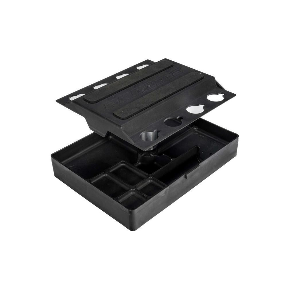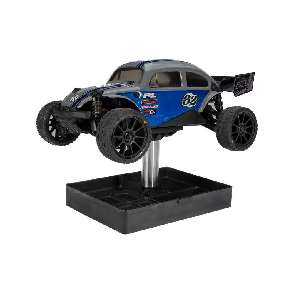 A Pro-Line állvány univerzálisan használható, 1:28-tól 1:8 méretarányig számos RC autómodell kiszolgálására. Sima forgatást, háromrészes moduláris tetőt, beépített tárolóhelyet és kompakt szállítást kínál versenyzők és hobbi autósok számára egyaránt.