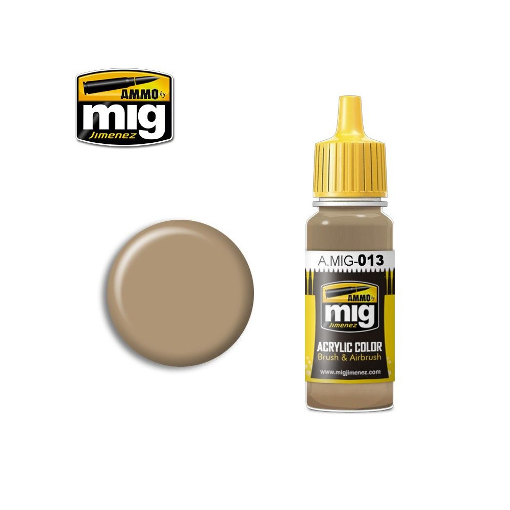 RAL 8000 používala DAK od marca 1942 do mája 1943 ako základnú farbu. Vďaka nášmu dôkladnému výskumu budú môcť modelári po prvýkrát maľovať vozidlá DAK bez zložitých zmesí. Akrylová - autentická farba s optimalizovaným zložením pre maximálny výkon buď štetcom, alebo airbrushom. 17 ml nádobka. Rozpustná vo vode, bez zápachu a netoxická. Pred každým použitím dobre pretrepte. Každá nádobka obsahuje miešadlo z nehrdzavejúcej ocele na uľahčenie miešania. Na správne riedenie odporúčame použiť akrylové riedidlo A.MIG-2000. Úplne zaschne do 24 hodín.