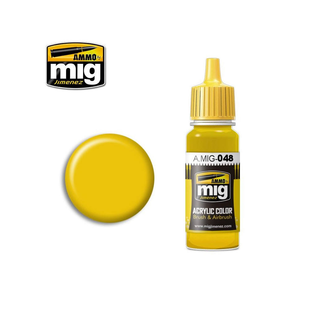 Žltá akrylová farba. Akrylová - autentická farba s optimalizovaným zložením pre maximálny výkon buď štetcom, alebo airbrushom. 17 ml nádobka. Rozpustná vo vode, bez zápachu a netoxická. Pred každým použitím dobre pretrepte. Každá nádobka obsahuje miešadlo z nehrdzavejúcej ocele na uľahčenie miešania. Na správne riedenie odporúčame použiť akrylové riedidlo A.MIG-2000. Úplne zaschne do 24 hodín.