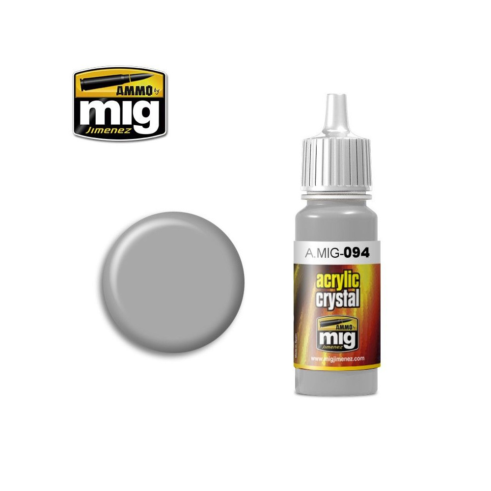Špeciálna akrylová farba, ktorá sa používa na jednoduché dosiahnutie povrchovej úpravy skleneného povrchu. Akrylová - autentická farba s optimalizovaným zložením pre maximálny výkon buď štetcom, alebo airbrushom. 17 ml nádobka. Rozpustná vo vode, bez zápachu a netoxická. Pred každým použitím dobre pretrepte. Každá nádobka obsahuje miešadlo z nehrdzavejúcej ocele na uľahčenie miešania. Na správne riedenie odporúčame použiť akrylové riedidlo A.MIG-2000. Úplne zaschne do 24 hodín.