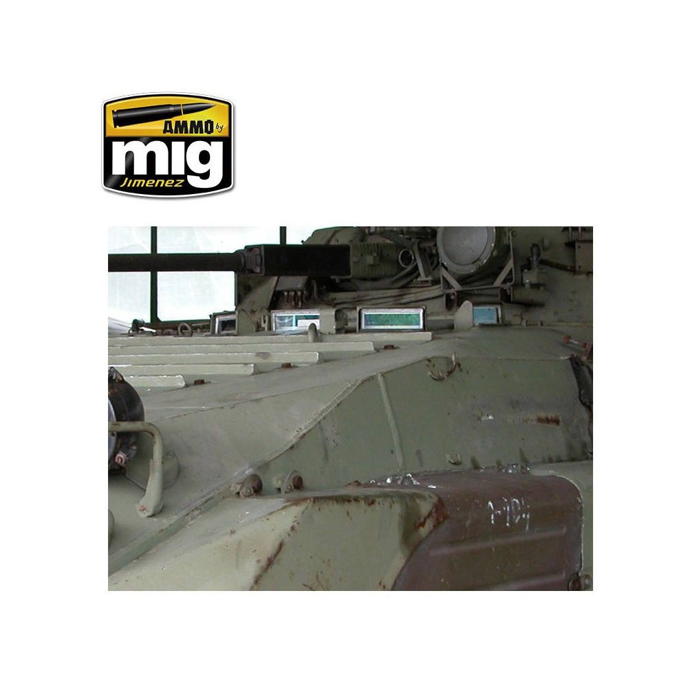 Špeciálna akrylová farba, ktorá sa používa na jednoduché dosiahnutie povrchovej úpravy skleneného povrchu. Akrylová - autentická farba s optimalizovaným zložením pre maximálny výkon buď štetcom, alebo airbrushom. 17 ml nádobka. Rozpustná vo vode, bez zápachu a netoxická. Pred každým použitím dobre pretrepte. Každá nádobka obsahuje miešadlo z nehrdzavejúcej ocele na uľahčenie miešania. Na správne riedenie odporúčame použiť akrylové riedidlo A.MIG-2000. Úplne zaschne do 24 hodín.